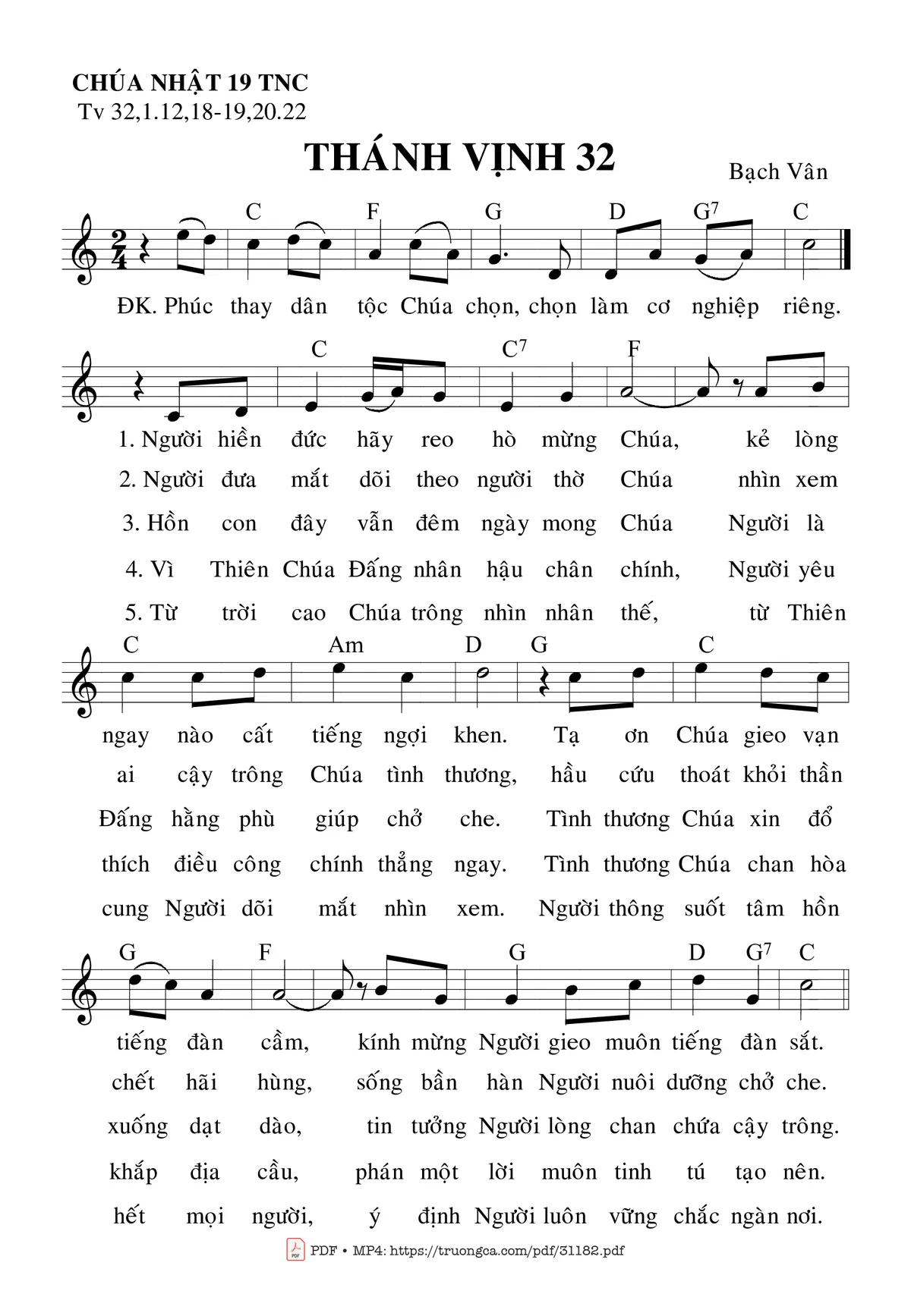 Các sheet PDF cùng tên Thánh Vịnh 32, Chúa Nhật 19C Thường Niên: