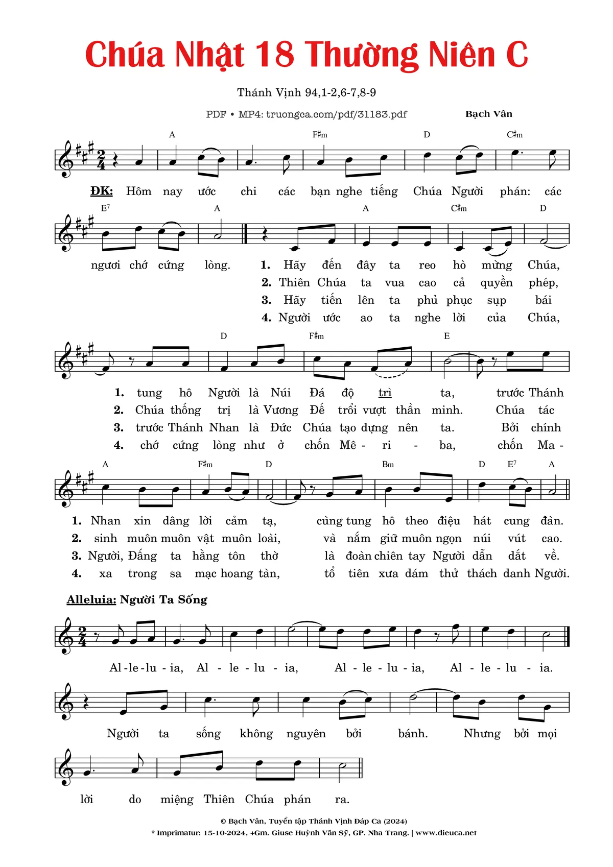 Các sheet PDF tương tự Thánh Vịnh 94 (Chúa Nhật 18C thường niên):