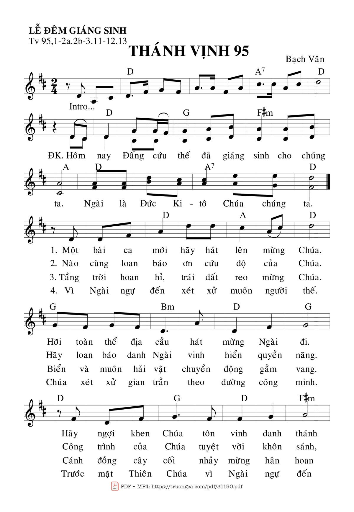Trang 1 của Sheet nhạc PDF bài hát Thánh Vịnh 95, Lễ Đêm Giáng Sinh - Bạch Vân