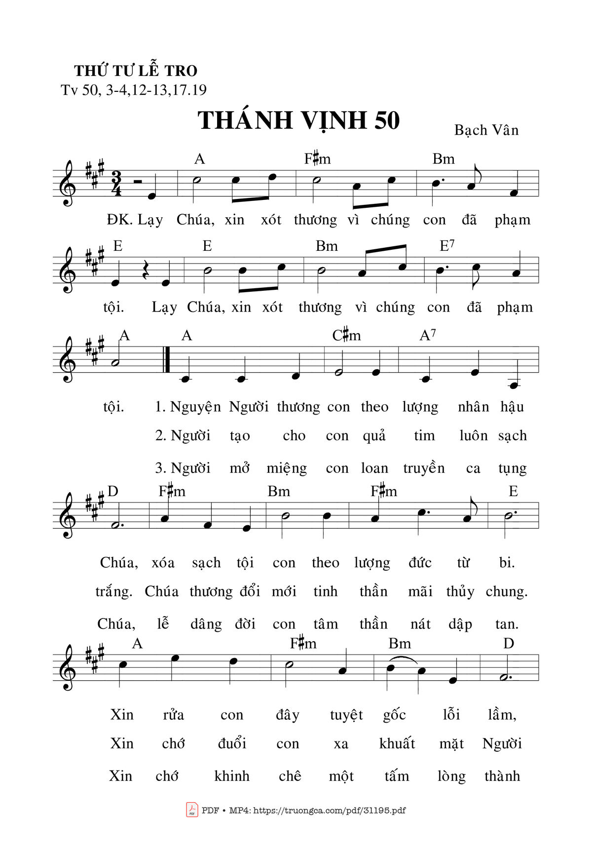 Sheet Thánh Vịnh 50, Thứ Tư Lễ Tro PDF (Bạch Vân), hợp âm