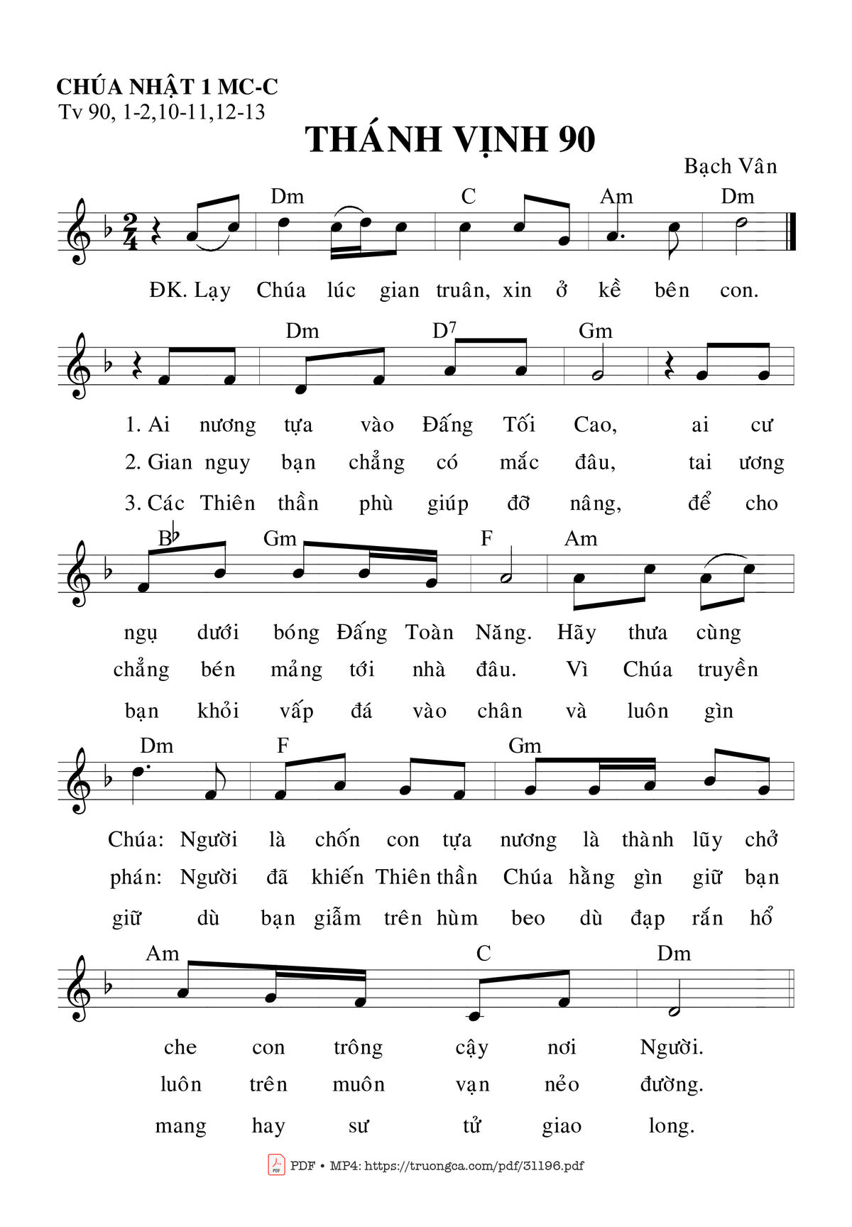 Sheet Thánh Vịnh 90, Chúa Nhật 1C Mùa Chay PDF (Bạch Vân), hợp âm