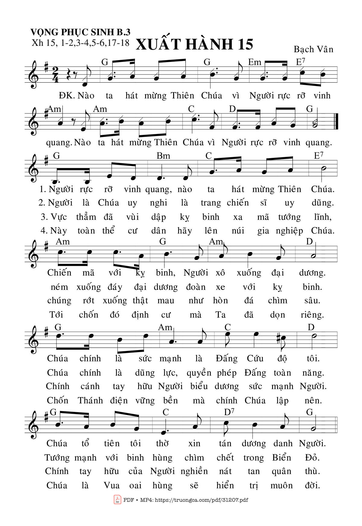 Trang 1 của Sheet nhạc PDF bài hát Vọng Phục Sinh – Bài 3 (Xh. 15) - Bạch Vân