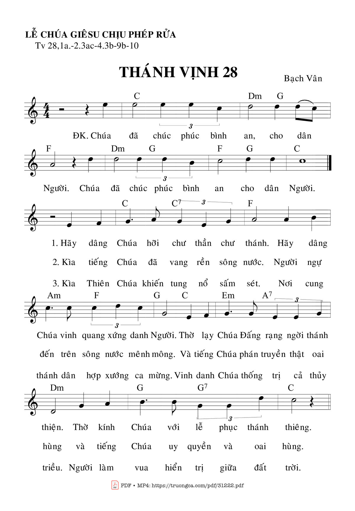 Sheet Thánh Vịnh 28, Lễ Chúa Giêsu Chịu Phép Rửa PDF (Bạch Vân), hợp âm