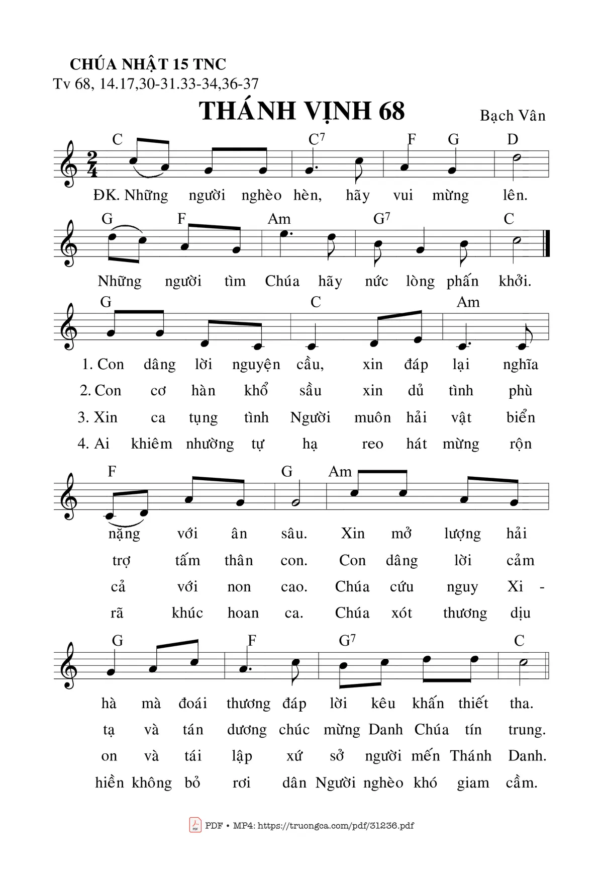 Sheet Thánh Vịnh 68, Chúa Nhật 15C Thường Niên PDF (Bạch Vân), hợp âm