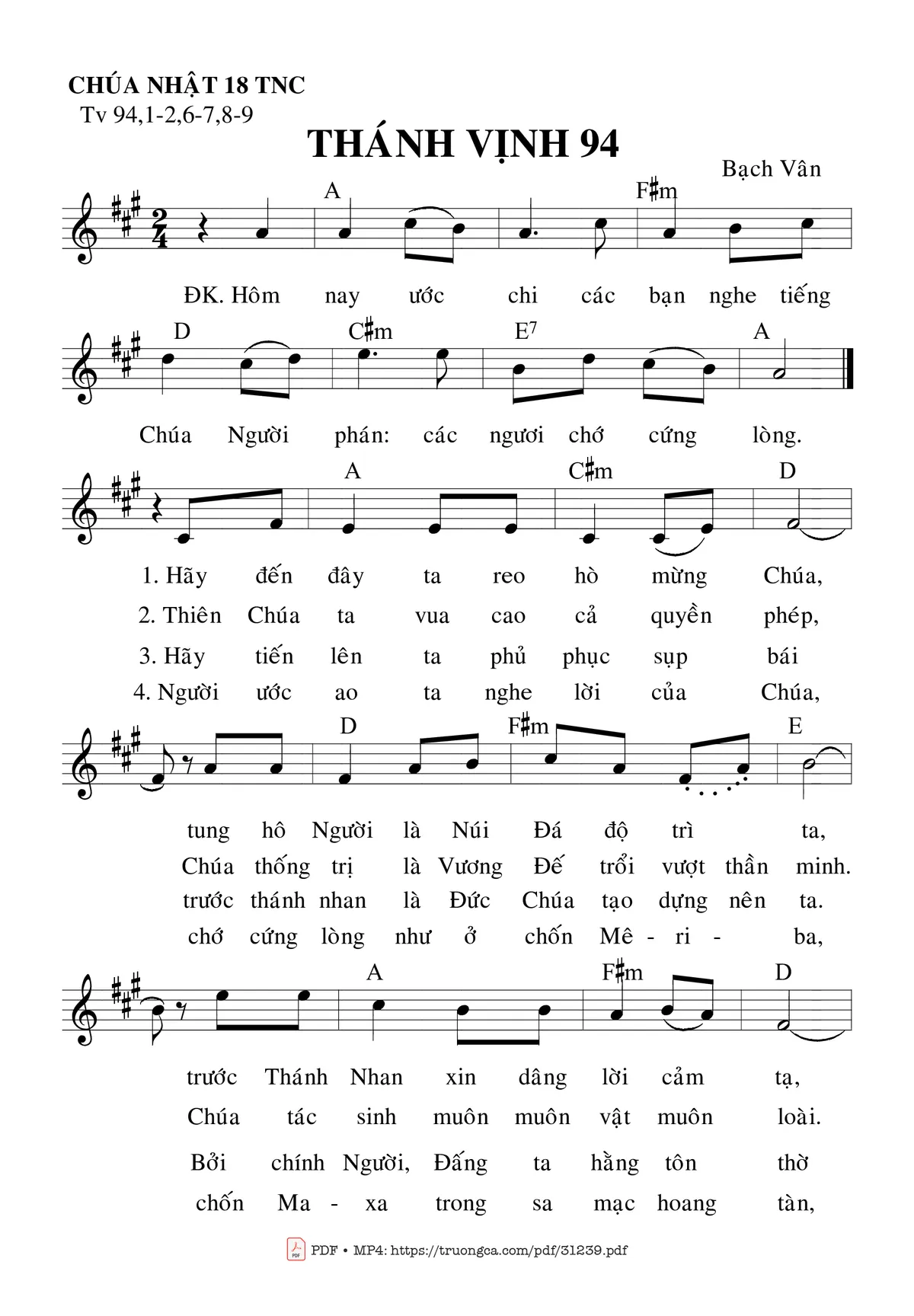 Các sheet PDF cùng tên Thánh Vịnh 94, Chúa Nhật 18C Thường Niên: