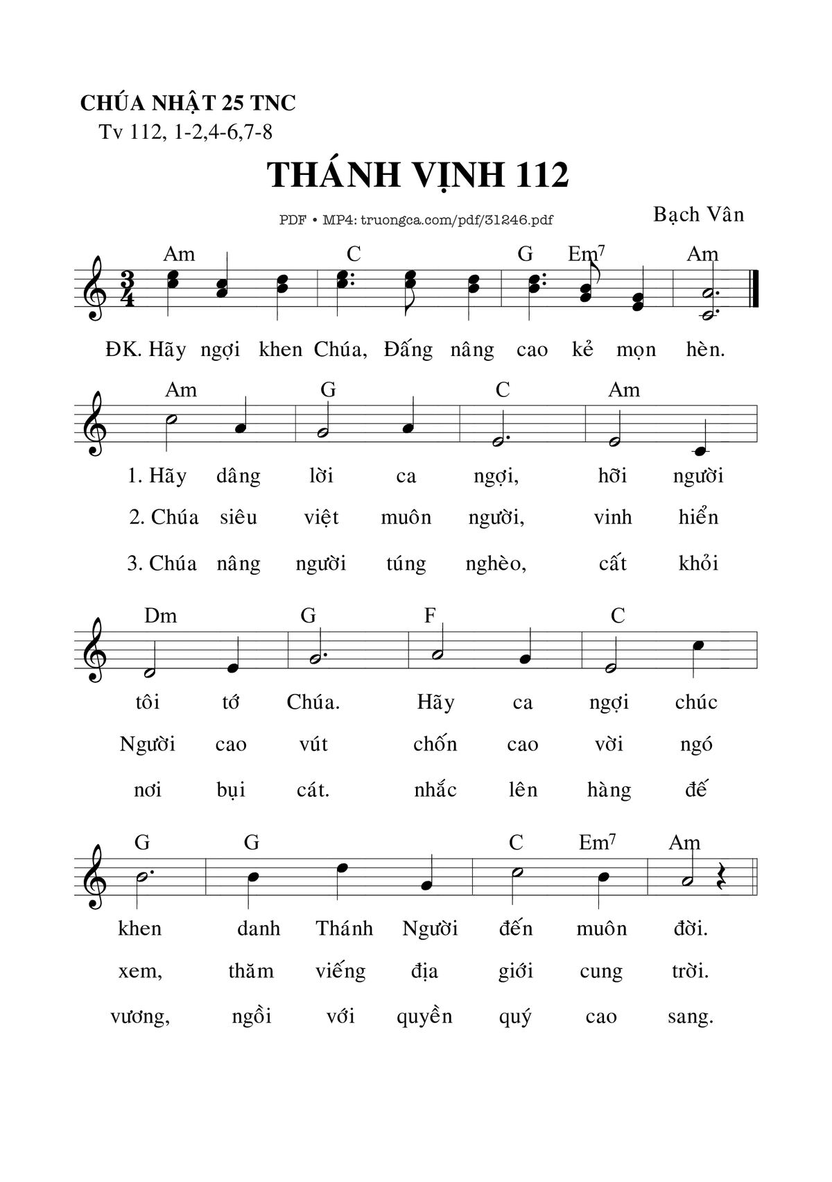 Sheet Thánh Vịnh 112, Chúa Nhật 25C Thường Niên PDF (Bạch Vân), hợp âm