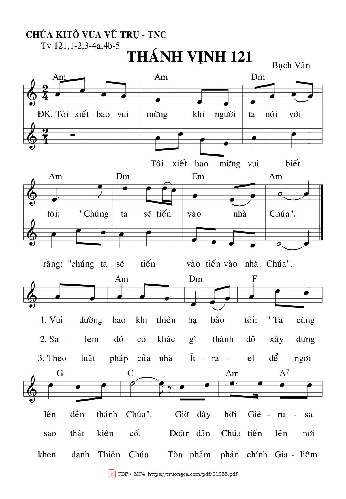 Sheet Thánh Vịnh 121, Chúa Nhật 34C Thường Niên PDF (Bạch Vân), hợp âm