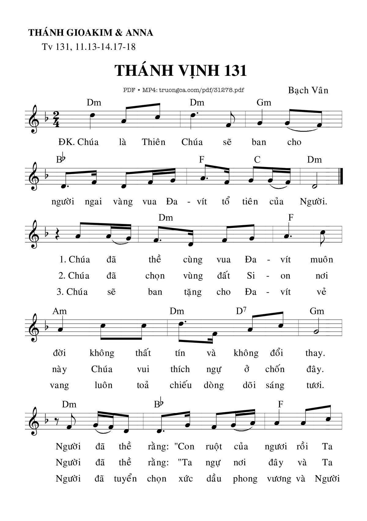 Trang 1 của Sheet nhạc PDF bài hát Thánh Vịnh 131, Lễ Thánh Gioakim Và Thánh Anna - Bạch Vân