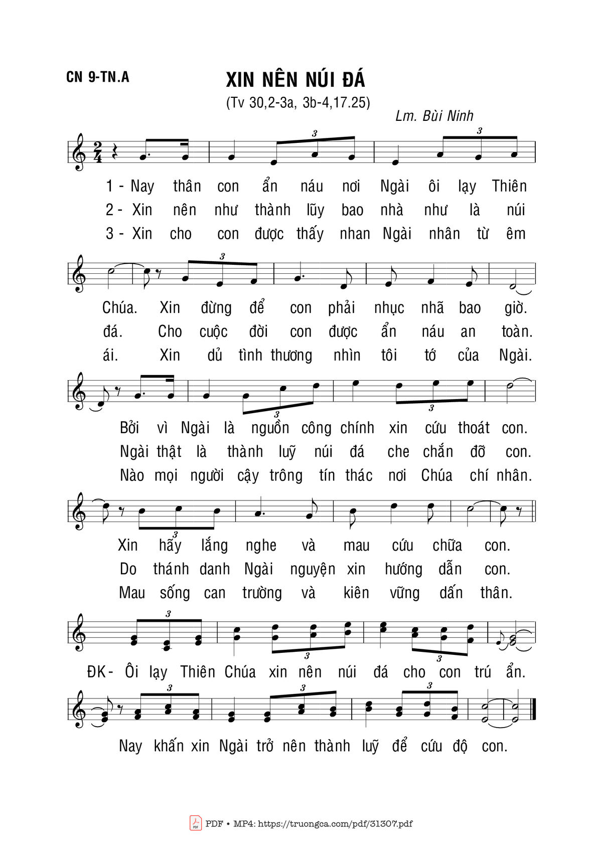 Sheet nhạc có nốt Xin Nên Núi Đá của nhạc sĩ Bùi Ninh và file PDF nốt nhạc đăng lên đây nhằm giúp các bạn xướng âm cho đúng nốt và hát thêm hay, chỉ mang tính chất tham khảo, không có mục đích thương mại. Bản quyền thuộc về tác giả và tổ chức nắm bản quyền, Truongca.com không giữ bất kỳ bản quyền của nội dung nào cả. Các bạn có thể tải về bản PDF chất lượng cao, gồm khuông nhạc có nốt với đường link file PDF bên trên.