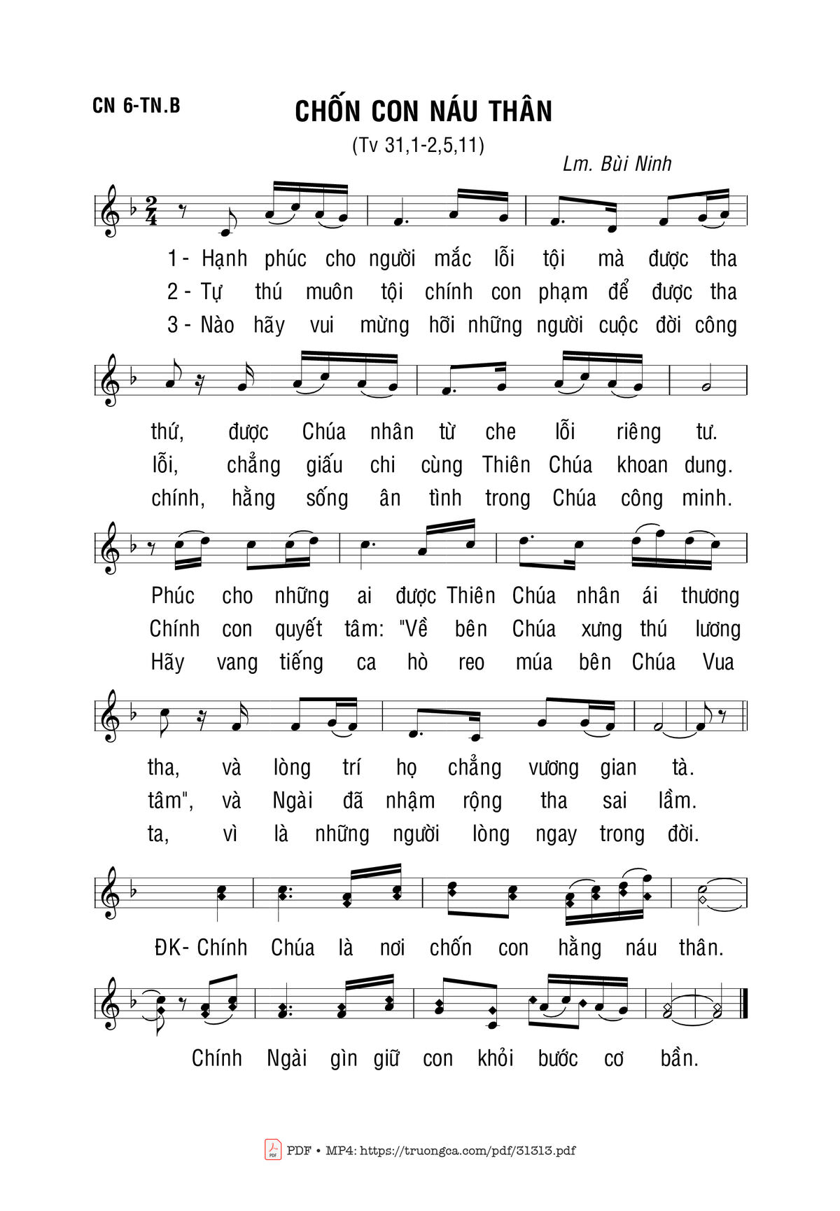 Sheet nhạc có nốt Chốn Con Náu Thân. của nhạc sĩ Bùi Ninh và file PDF nốt nhạc đăng lên đây nhằm giúp các bạn xướng âm cho đúng nốt và hát thêm hay, chỉ mang tính chất tham khảo, không có mục đích thương mại. Bản quyền thuộc về tác giả và tổ chức nắm bản quyền, Truongca.com không giữ bất kỳ bản quyền của nội dung nào cả. Các bạn có thể tải về bản PDF chất lượng cao, gồm khuông nhạc có nốt với đường link file PDF bên trên.