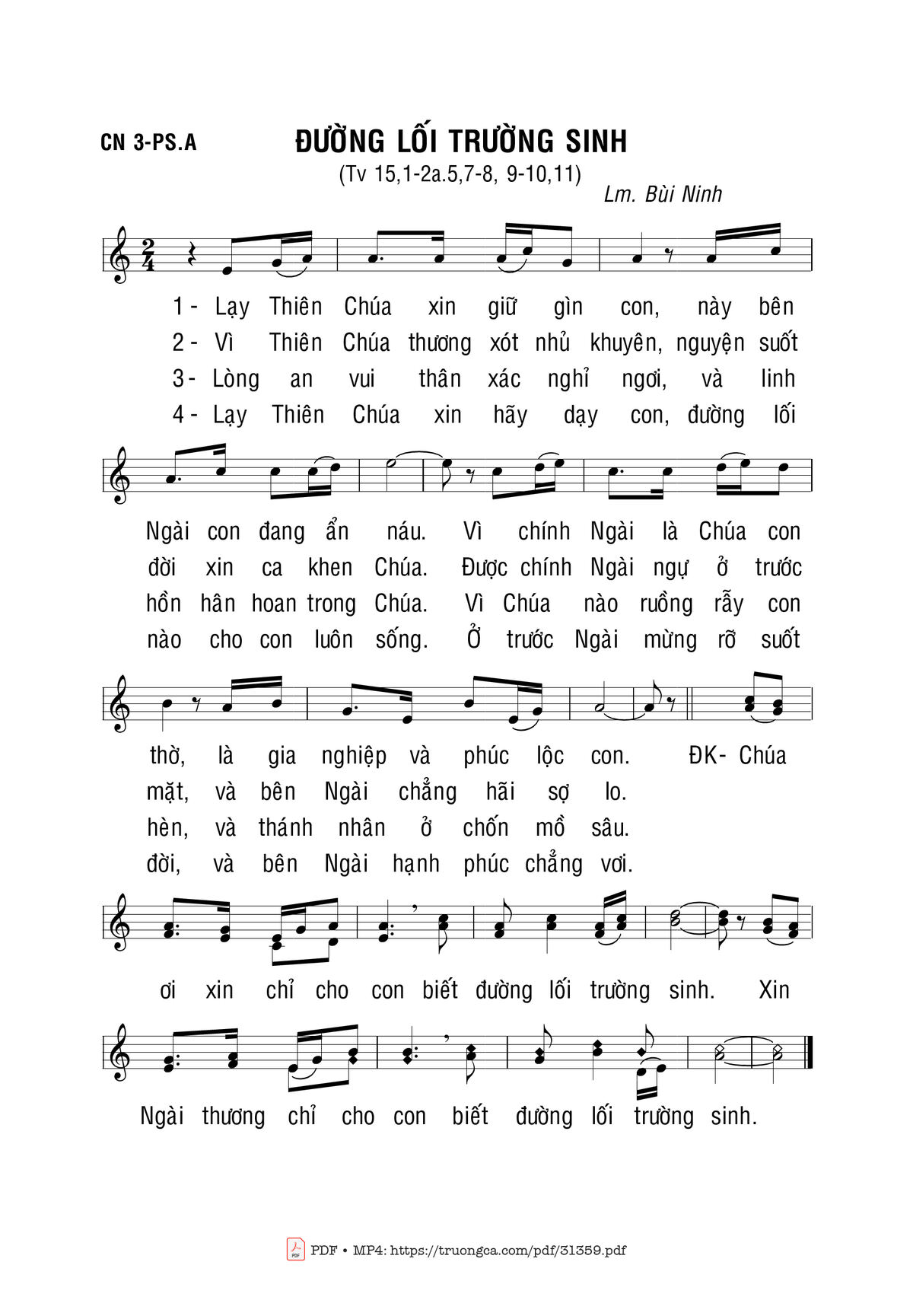 Sheet nhạc có nốt Đường Lối Trường Sinh của nhạc sĩ Bùi Ninh và file PDF nốt nhạc đăng lên đây nhằm giúp các bạn xướng âm cho đúng nốt và hát thêm hay, chỉ mang tính chất tham khảo, không có mục đích thương mại. Bản quyền thuộc về tác giả và tổ chức nắm bản quyền, Truongca.com không giữ bất kỳ bản quyền của nội dung nào cả. Các bạn có thể tải về bản PDF chất lượng cao, gồm khuông nhạc có nốt với đường link file PDF bên trên.