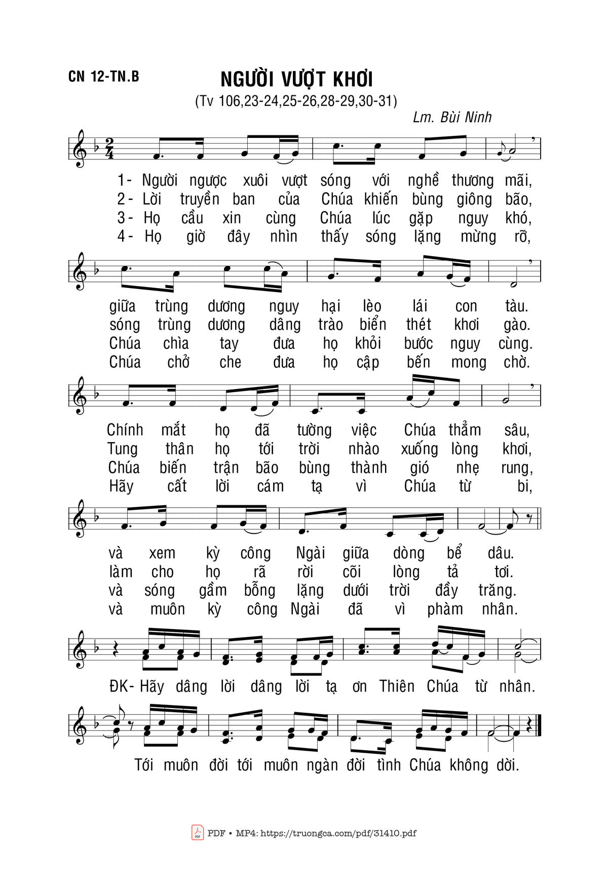 Sheet nhạc có nốt Người Vượt Khơi của nhạc sĩ Bùi Ninh và file PDF nốt nhạc đăng lên đây nhằm giúp các bạn xướng âm cho đúng nốt và hát thêm hay, chỉ mang tính chất tham khảo, không có mục đích thương mại. Bản quyền thuộc về tác giả và tổ chức nắm bản quyền, Truongca.com không giữ bất kỳ bản quyền của nội dung nào cả. Các bạn có thể tải về bản PDF chất lượng cao, gồm khuông nhạc có nốt với đường link file PDF bên trên.