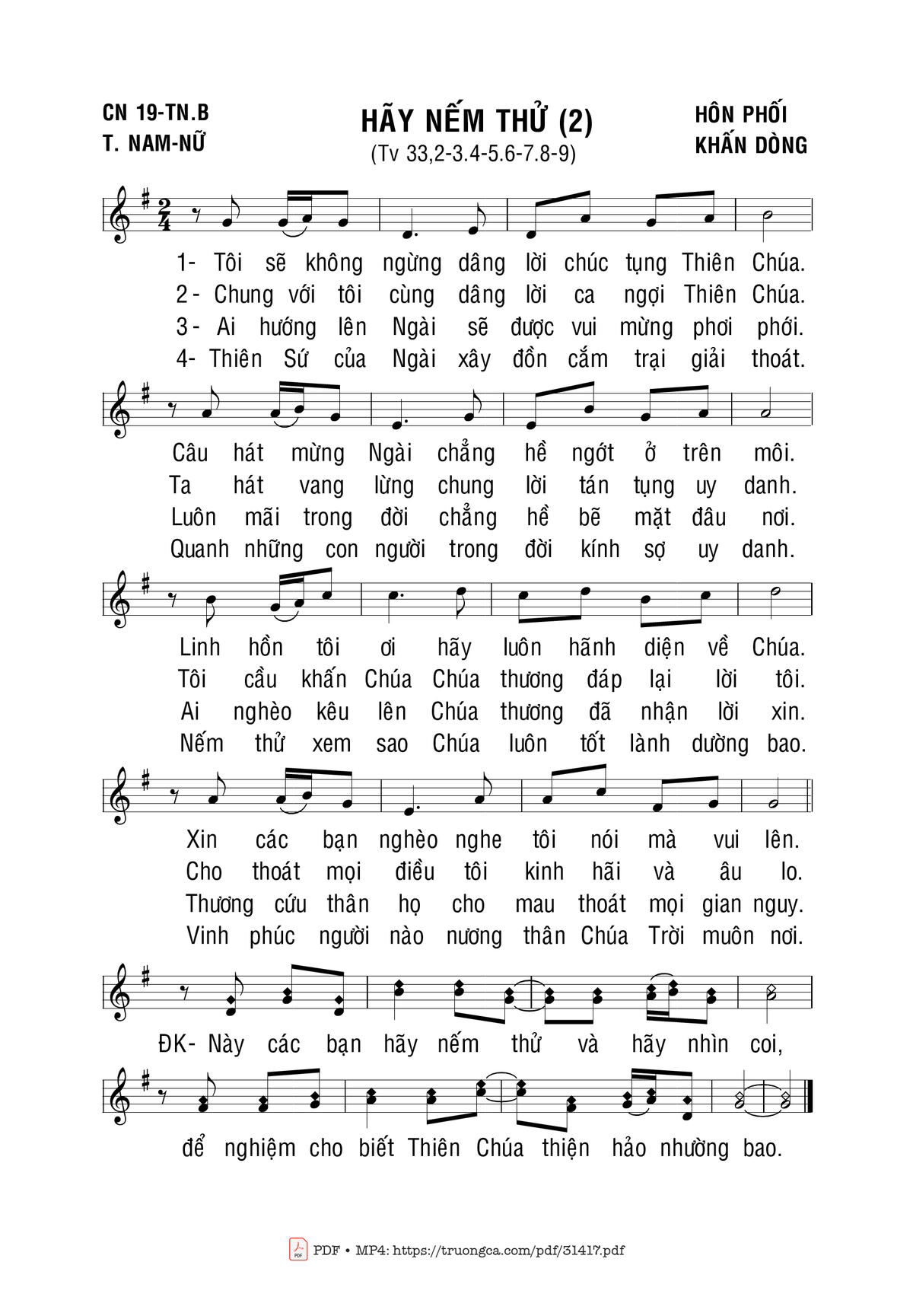 Sheet nhạc có nốt Hãy Nếm Thử (2) của nhạc sĩ Bùi Ninh và file PDF nốt nhạc đăng lên đây nhằm giúp các bạn xướng âm cho đúng nốt và hát thêm hay, chỉ mang tính chất tham khảo, không có mục đích thương mại. Bản quyền thuộc về tác giả và tổ chức nắm bản quyền, Truongca.com không giữ bất kỳ bản quyền của nội dung nào cả. Các bạn có thể tải về bản PDF chất lượng cao, gồm khuông nhạc có nốt với đường link file PDF bên trên.