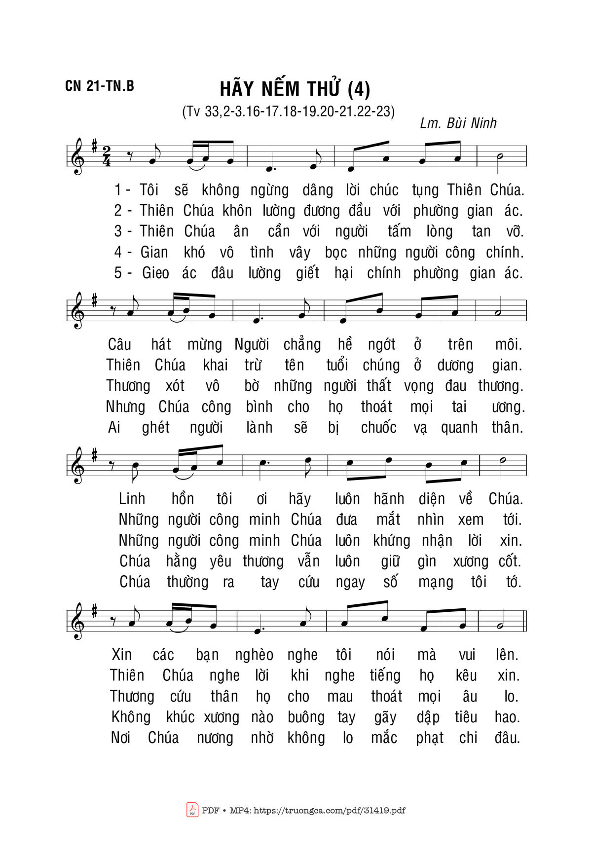 Sheet nhạc có nốt Hãy Nếm Thử (4) của nhạc sĩ Bùi Ninh và file PDF nốt nhạc đăng lên đây nhằm giúp các bạn xướng âm cho đúng nốt và hát thêm hay, chỉ mang tính chất tham khảo, không có mục đích thương mại. Bản quyền thuộc về tác giả và tổ chức nắm bản quyền, Truongca.com không giữ bất kỳ bản quyền của nội dung nào cả. Các bạn có thể tải về bản PDF chất lượng cao, gồm khuông nhạc có nốt với đường link file PDF bên trên.