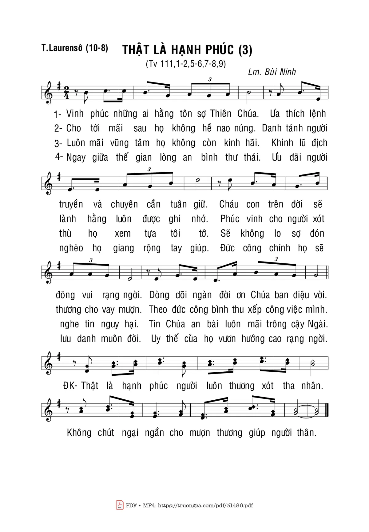 Trang 1 của Sheet nhạc PDF bài hát Thánh Vịnh 111, Thật Là Hạnh Phúc 3 - Bùi Ninh