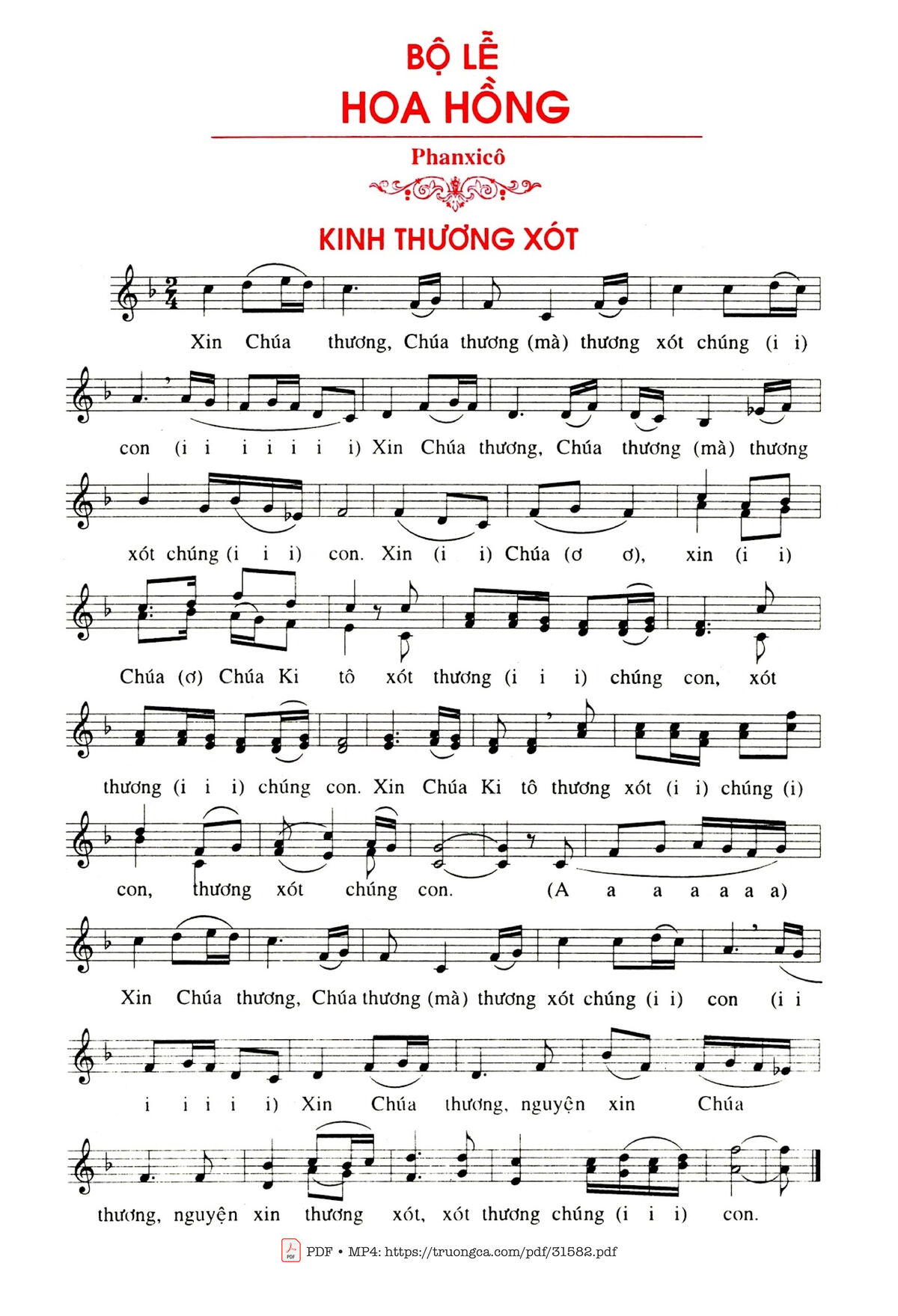 Trang 1 của Sheet nhạc PDF bài hát Bộ Lễ Hoa Hồng (2 Bè) - Phanxico