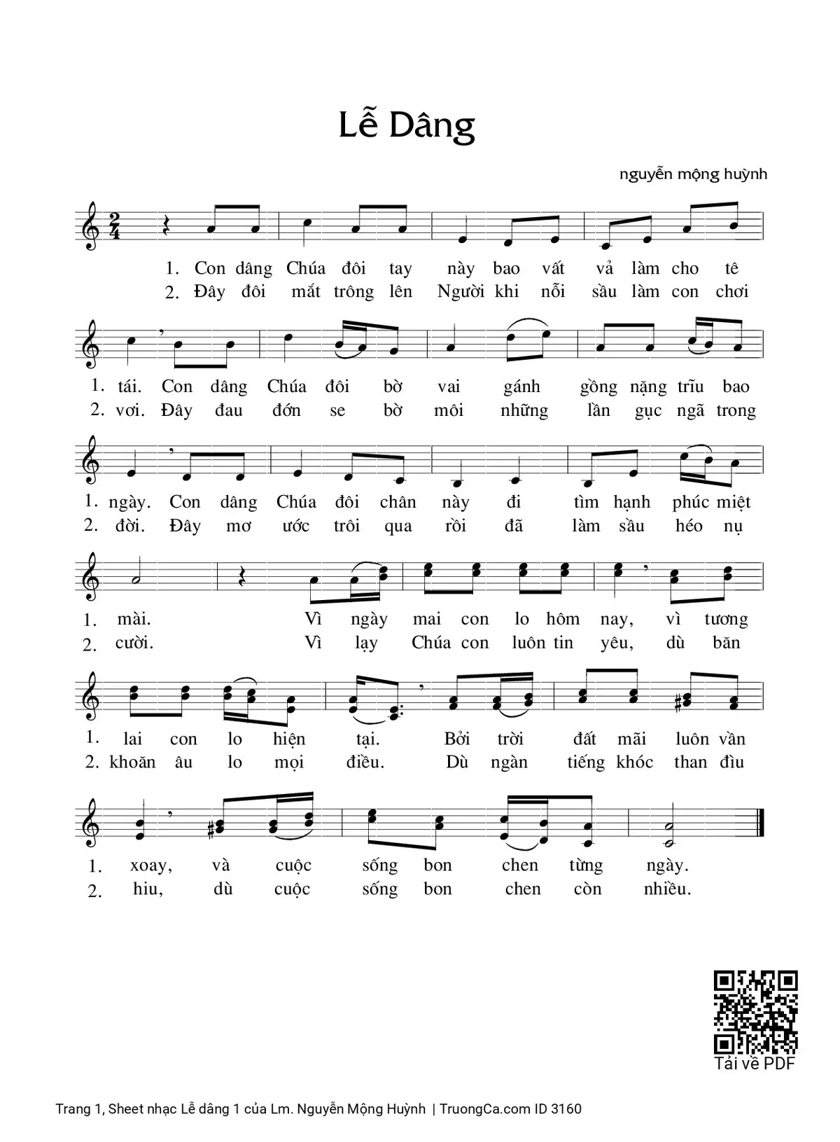 Lm. Nguyễn Mộng Huỳnh Con dâng Chúa đôi tay này bao vất vả làm cho tê tái [PDF] [Sheet] [Lời H.A] [Mp4/Midi]
