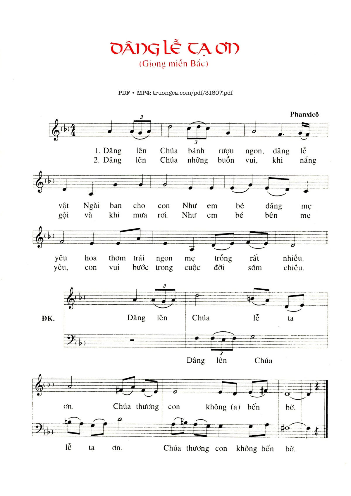 Trang 1 của Sheet nhạc PDF bài hát Dâng Lễ Tạ Ơn (Bắc) - Phanxico