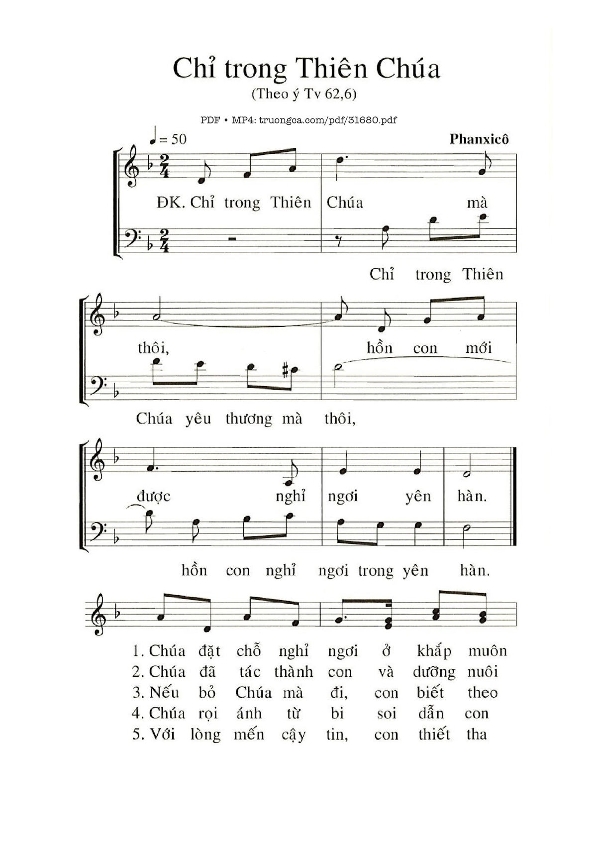 Trang 1 của Sheet nhạc PDF bài hát Chỉ Trong Thiên Chúa - Phanxico