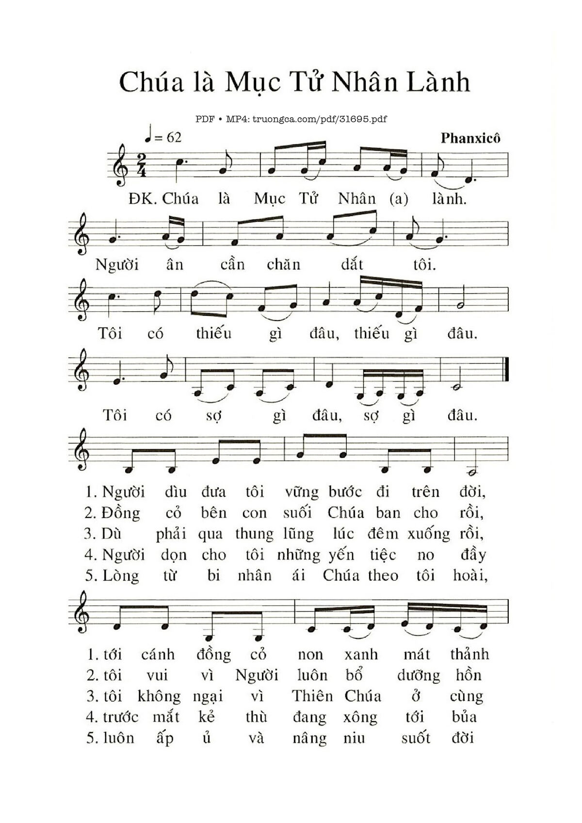 Trang 1 của Sheet nhạc PDF bài hát Chúa Là Mục Tử Nhân Lành - Phanxico