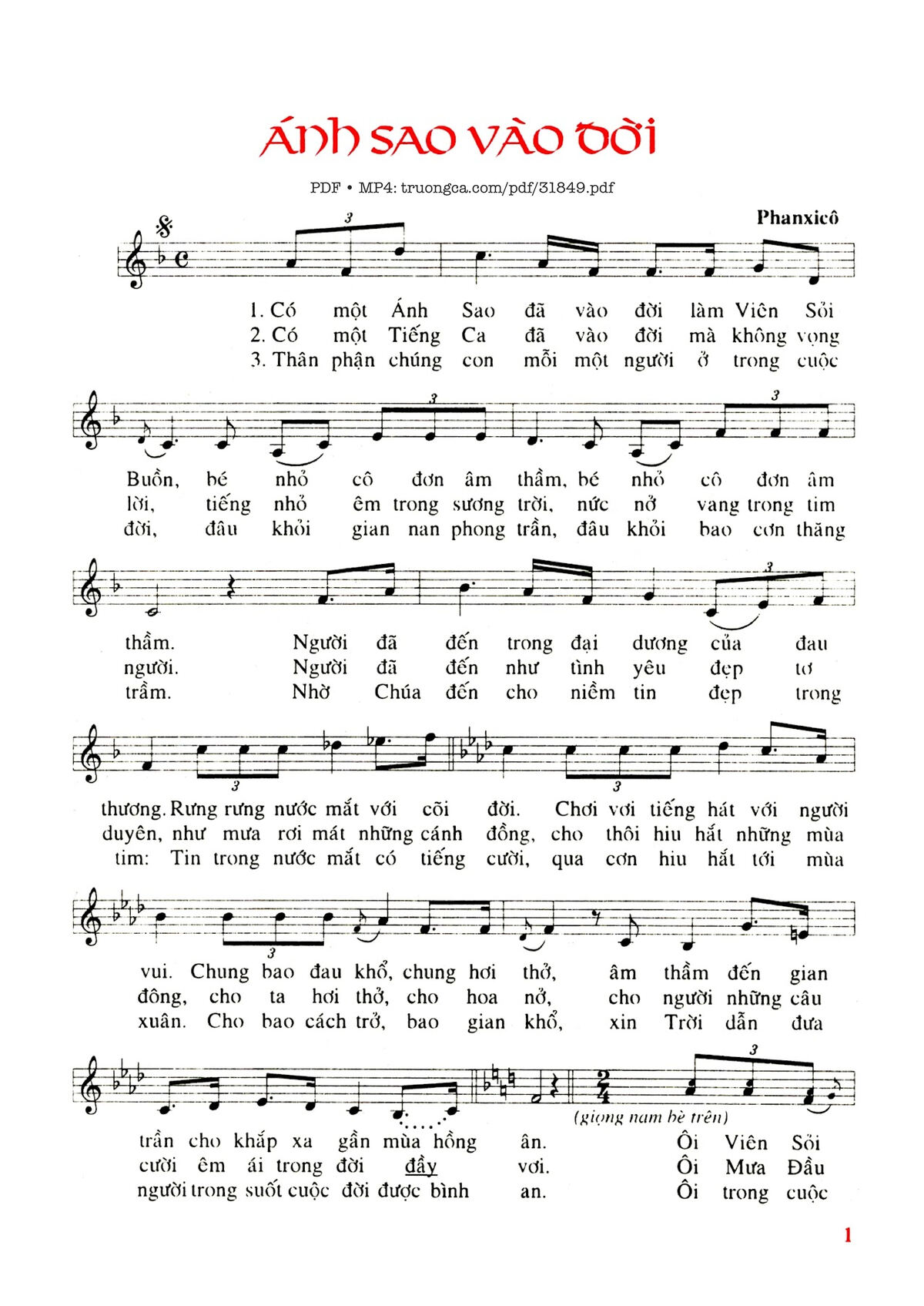 Trang 1 của Sheet nhạc PDF bài hát Ánh Sao Vào Đời - Phanxico