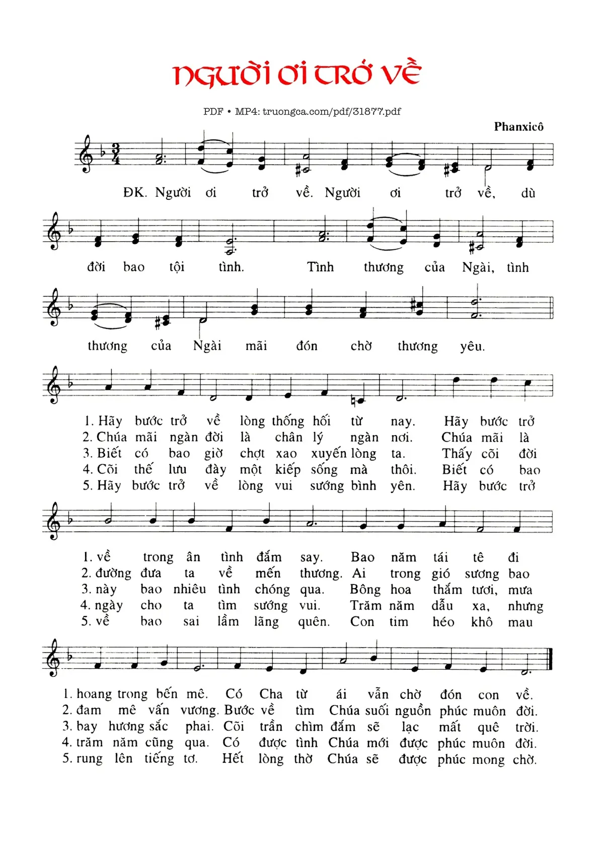 Các sheet PDF tương tự Người Ơi Trở Về: