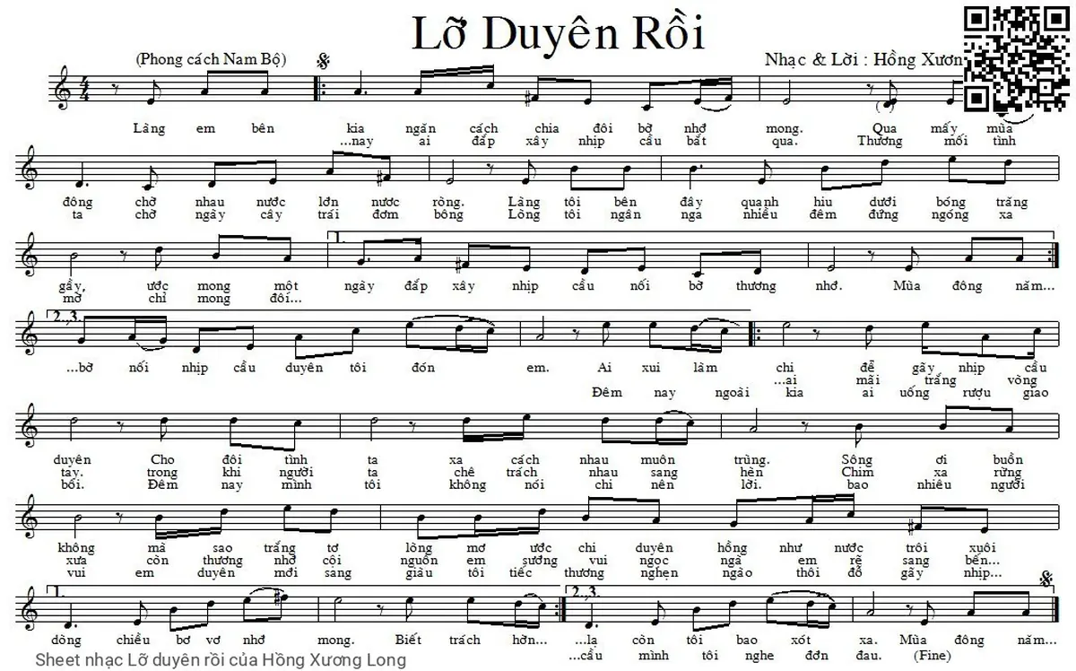 Hồng Xương Long Làng em bên kia ngăn cách chia đôi bờ nhớ mong [PDF] [Sheet] [Lời H.A] [Mp4/Midi]