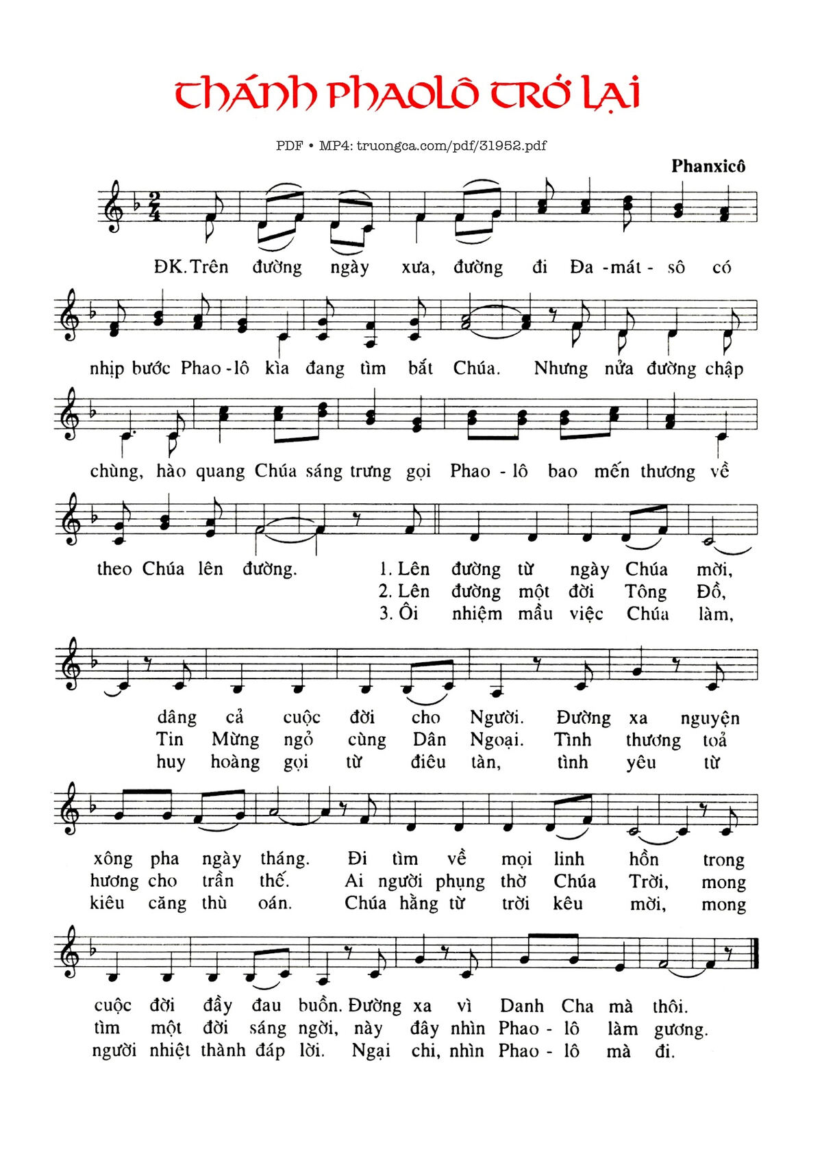 Các sheet PDF tương tự Thánh Phanxicô Trở Lại: