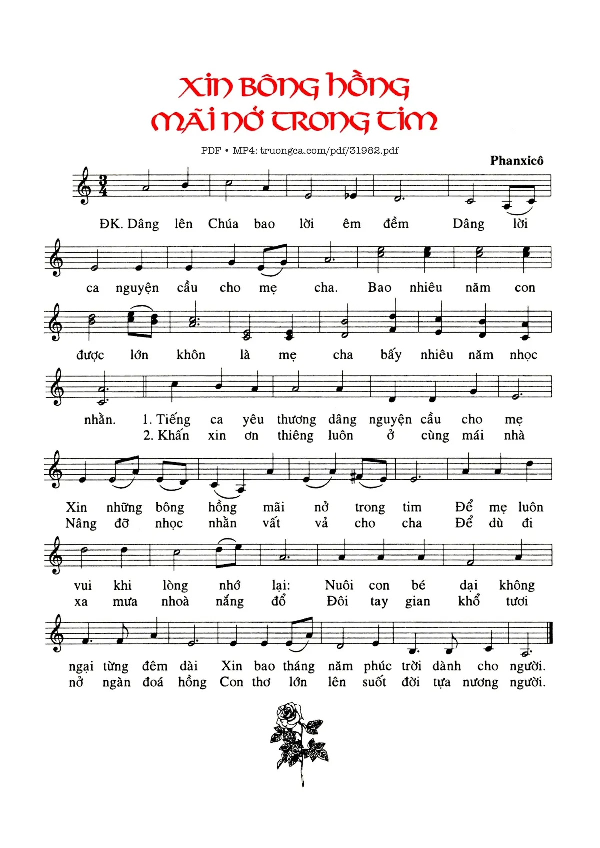 Trang 1 của Sheet nhạc PDF bài hát Xin Bông Hồng Mãi Mở Trong Tim - Phanxico