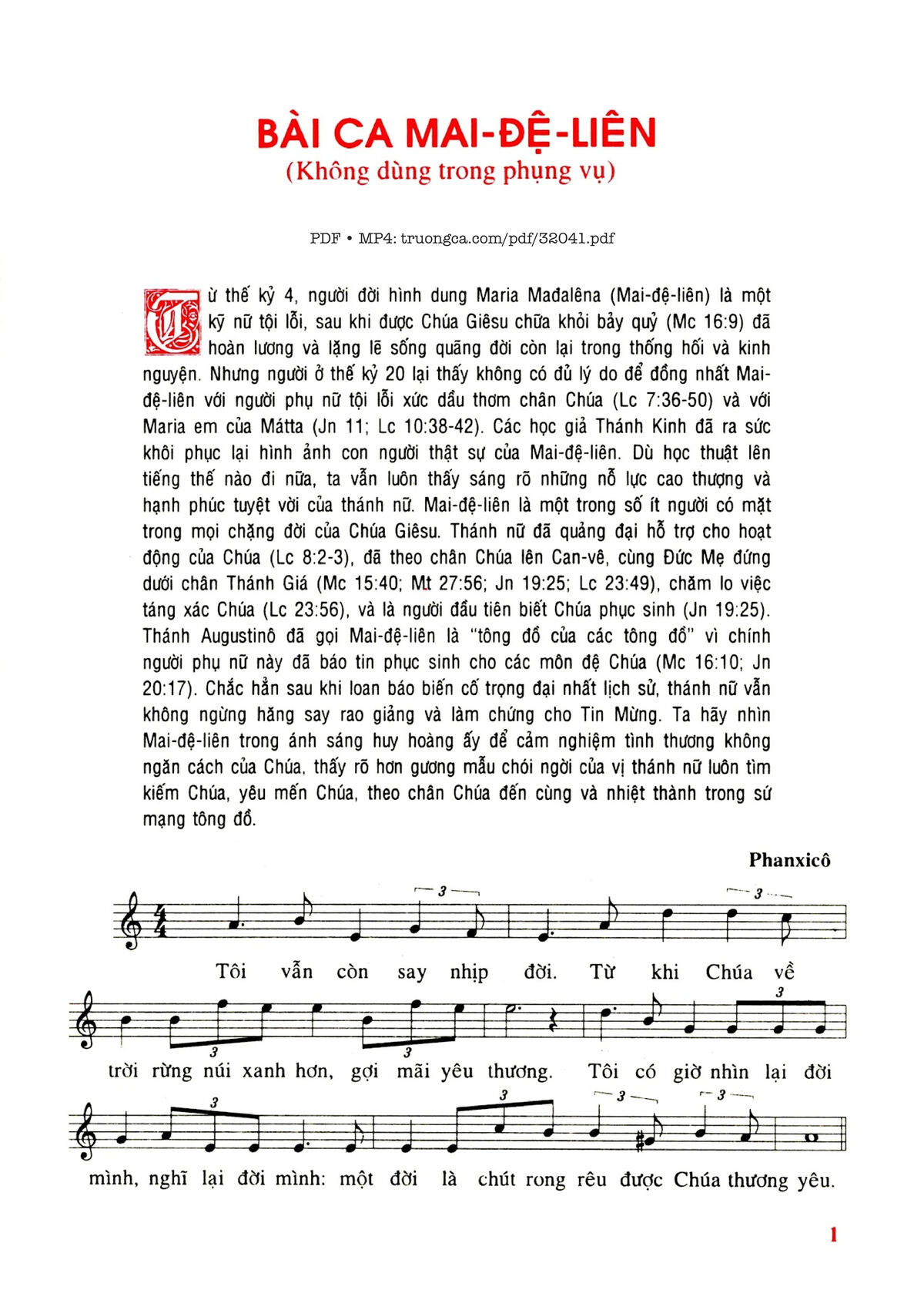 Trang 1 của Sheet nhạc PDF bài hát Bài Ca Mai Đệ Liên - Phanxico