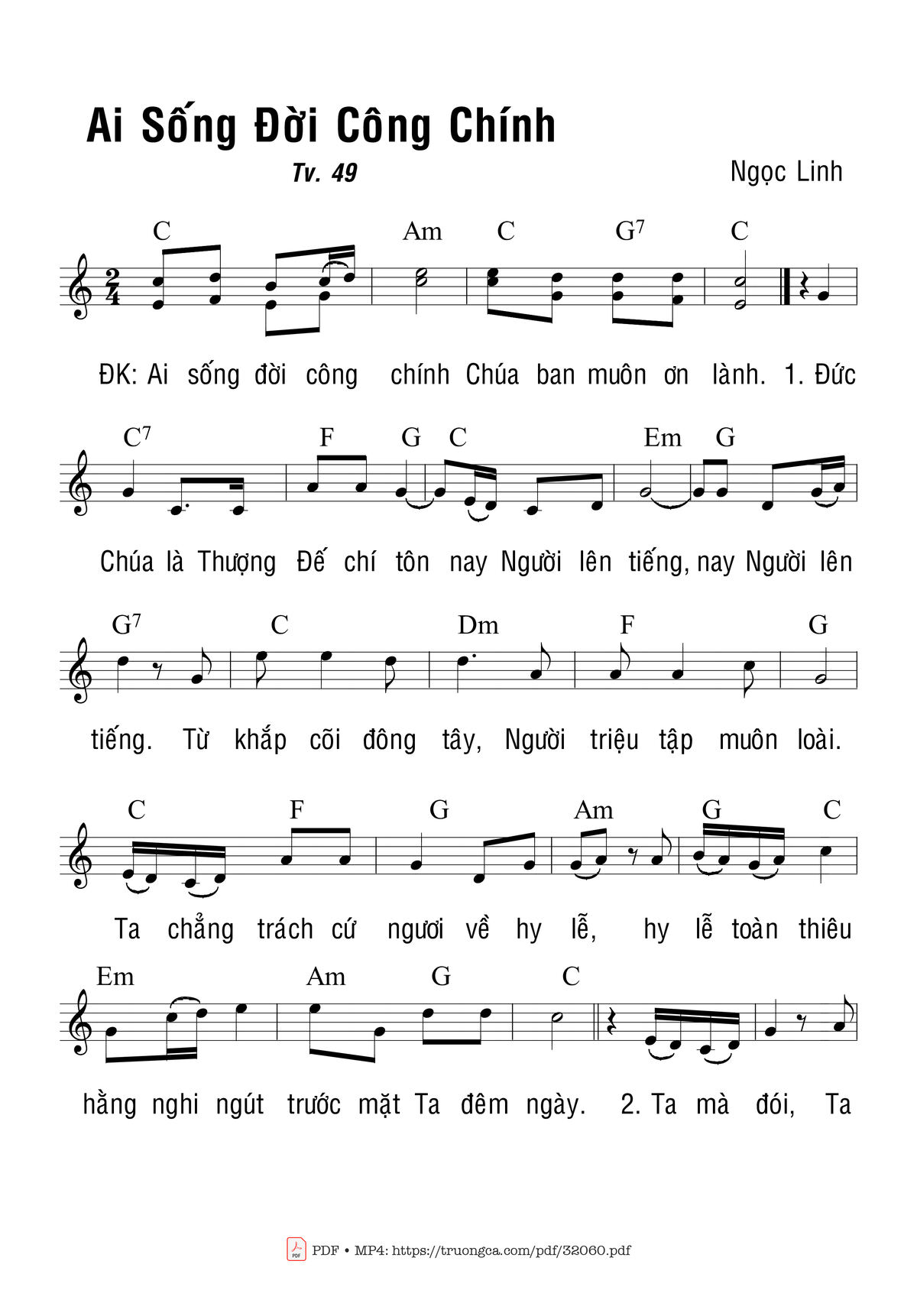 Sheet Thánh Vịnh 49, Ai Sống Đời Công Chính PDF (Ngọc Linh), hợp âm
