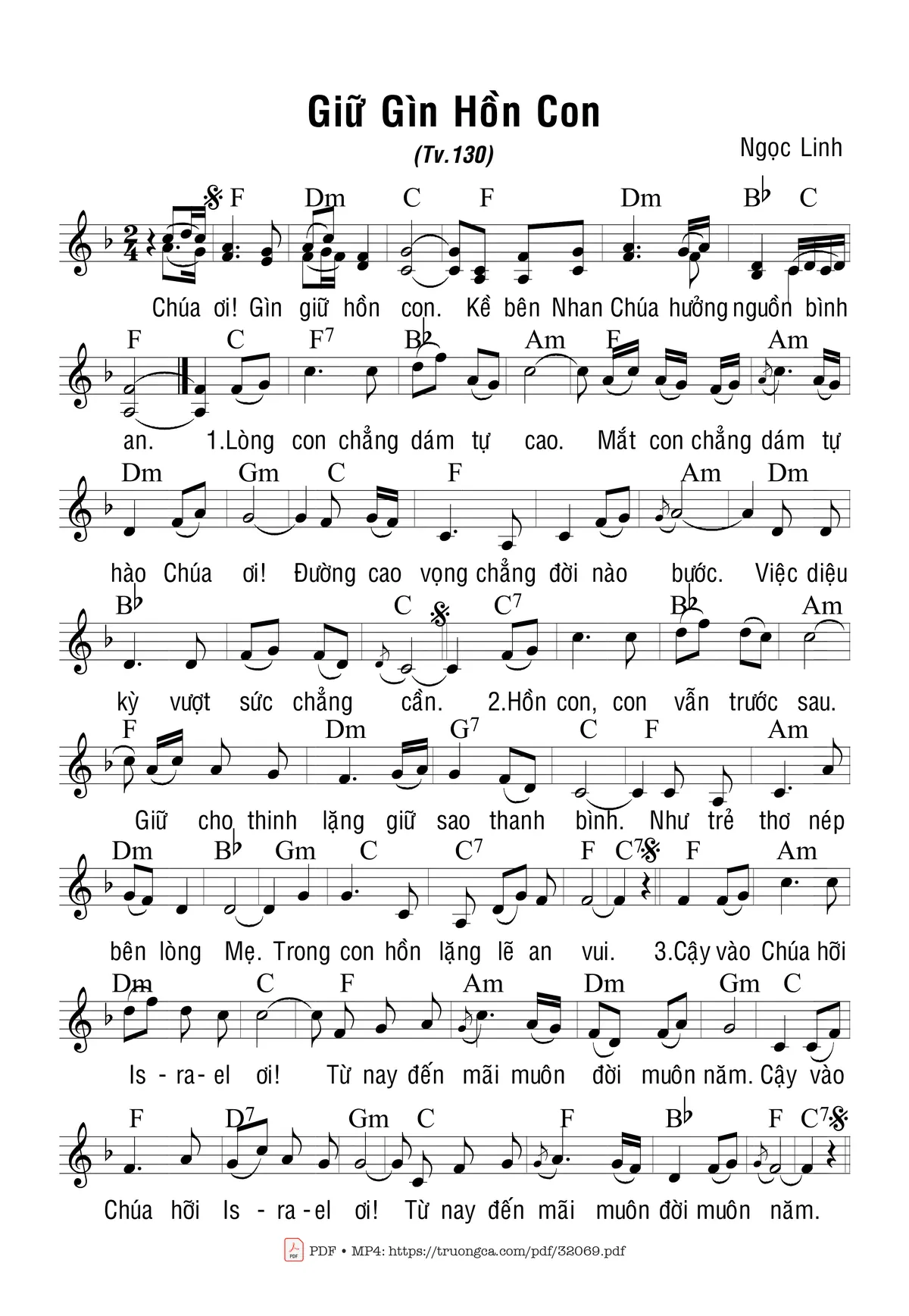 Sheet Thánh Vịnh 130, Giữ Gìn Hồn Con PDF, hợp âm