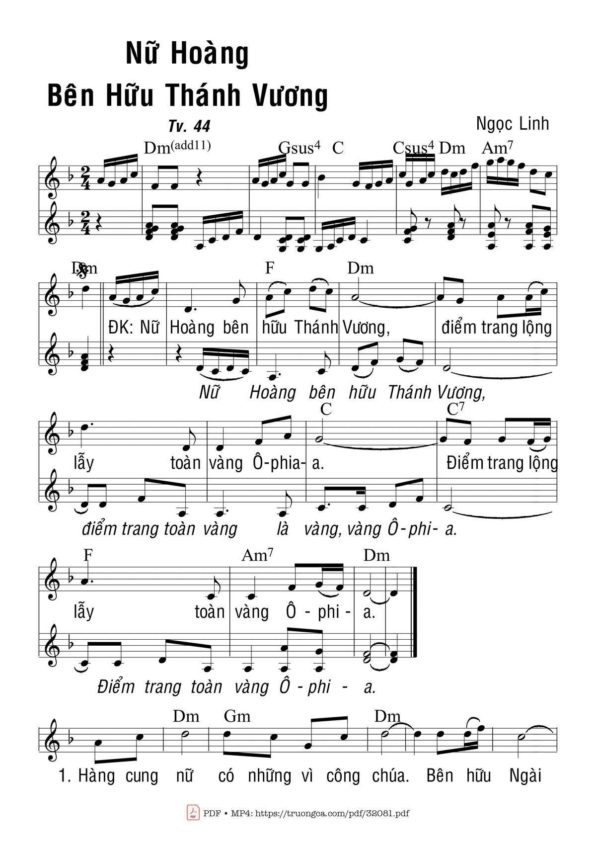 Trang 1 của Sheet nhạc PDF bài hát Thánh Vịnh 44, Nữ Hoàng Bên Hữu Th V - Ngọc Linh
