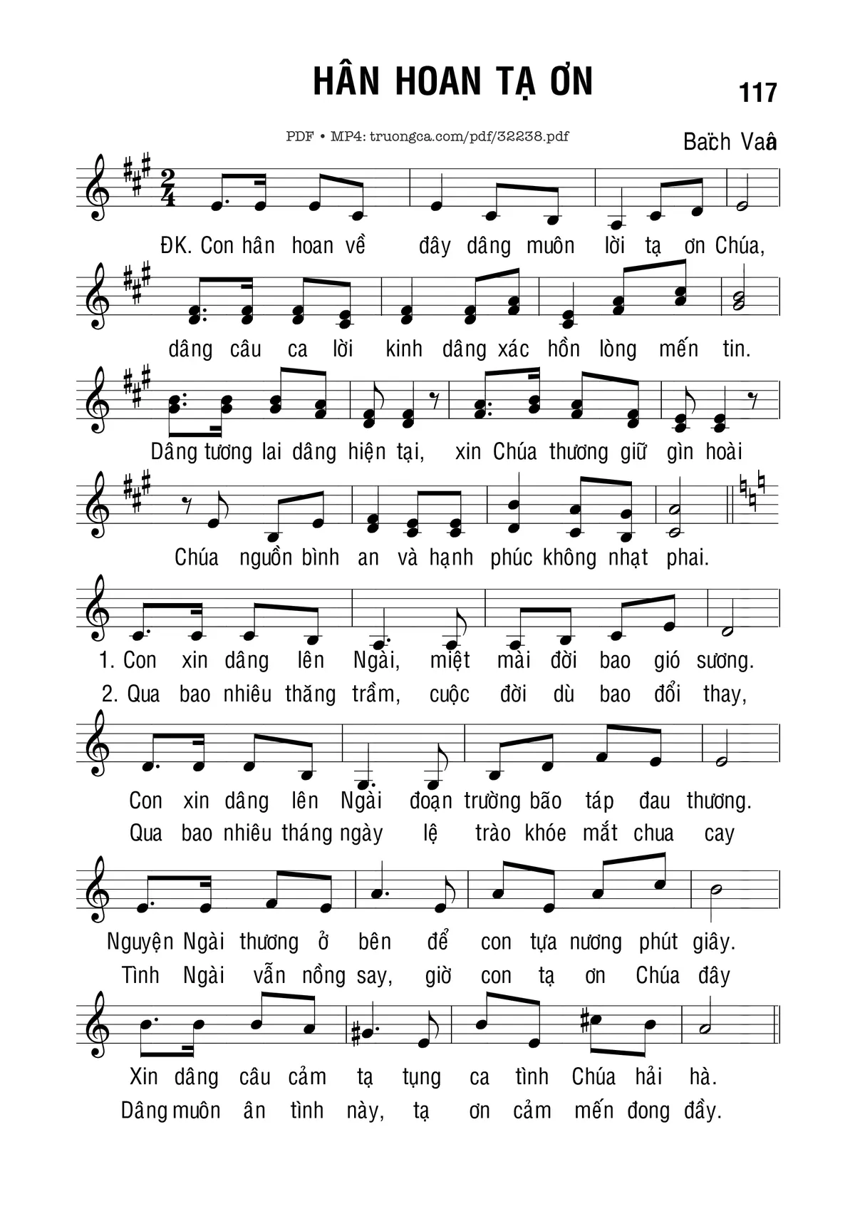 Bạch Vân Con hân hoan về đây dâng muôn lời tạ ơn Chúa [PDF] [Sheet] [Lời H.A] [Mp4/Midi]