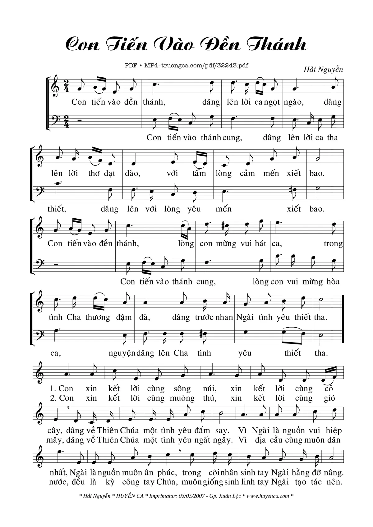 Hải Nguyễn Con tiến vào đền thánh dâng lên lời ca ngọt ngào [PDF] [Sheet] [Lời H.A] [Mp4/Midi]