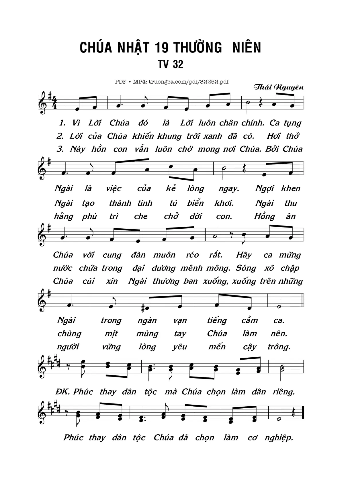 Các sheet PDF cùng tên Thánh Vịnh 32, Chúa Nhật 19C Thường Niên: