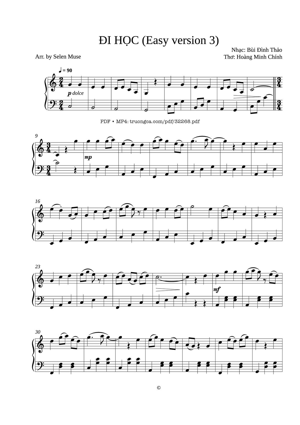 Download and print in PDF or MIDI free sheet music of DI HOC (Easy version 3) – Selen Muse - selenaentoffi for DI HOC (Easy version 3) – Selen Muse arranged by selenaentoffi for Piano (Solo)