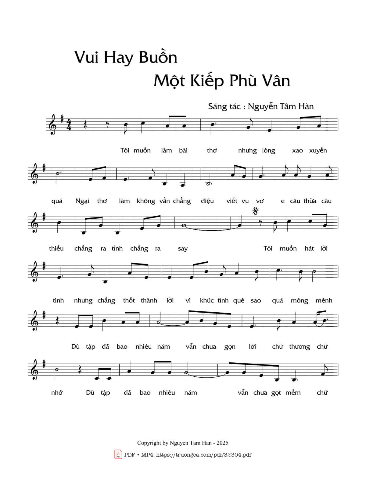 Nguyễn Tâm Hàn Tôi muốn làm bài thơ nhưng lòng xao xuyến quá [PDF] [Sheet] [Lời H.A] [Mp4/Midi]
