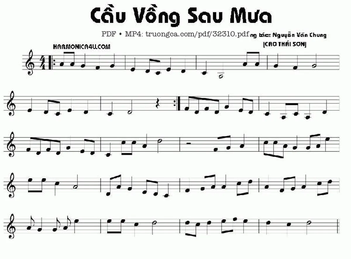 Sheet nhạc có nốt Cầu Vòng Sau Mưa của nhạc sĩ Nguyễn Văn Chung và file PDF nốt nhạc đăng lên đây nhằm giúp các bạn xướng âm cho đúng nốt và hát thêm hay, chỉ mang tính chất tham khảo, không có mục đích thương mại. Bản quyền thuộc về tác giả và tổ chức nắm bản quyền, Truongca.com không giữ bất kỳ bản quyền của nội dung nào cả. Các bạn có thể tải về bản PDF chất lượng cao, gồm khuông nhạc có nốt với đường link file PDF bên trên.