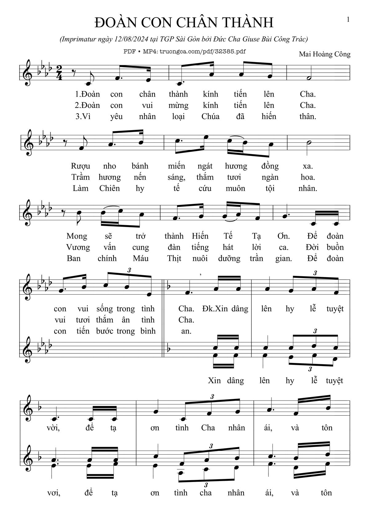 Trang 1 của Sheet nhạc PDF bài hát Đoàn Con Chân Thành - Mai Hoàng Công