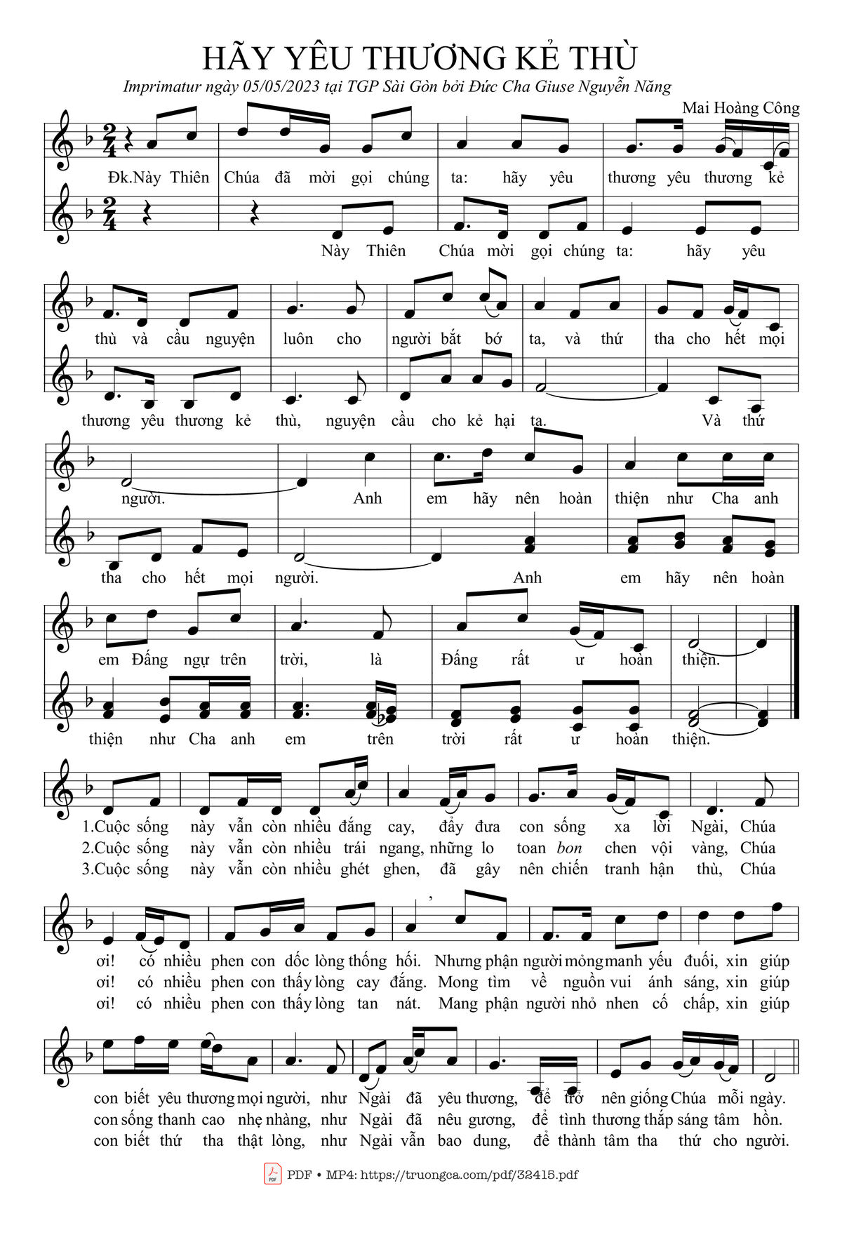 Trang 1 của Sheet nhạc PDF bài hát Hãy Yêu Thương Kẻ Thù - Mai Hoàng Công