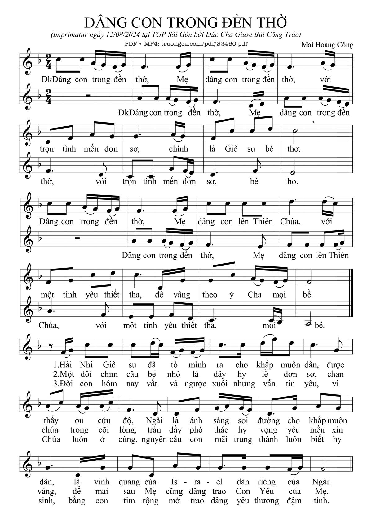 Trang 1 của Sheet nhạc PDF bài hát Dâng Con Trong Đền Thờ - Mai Hoàng Công