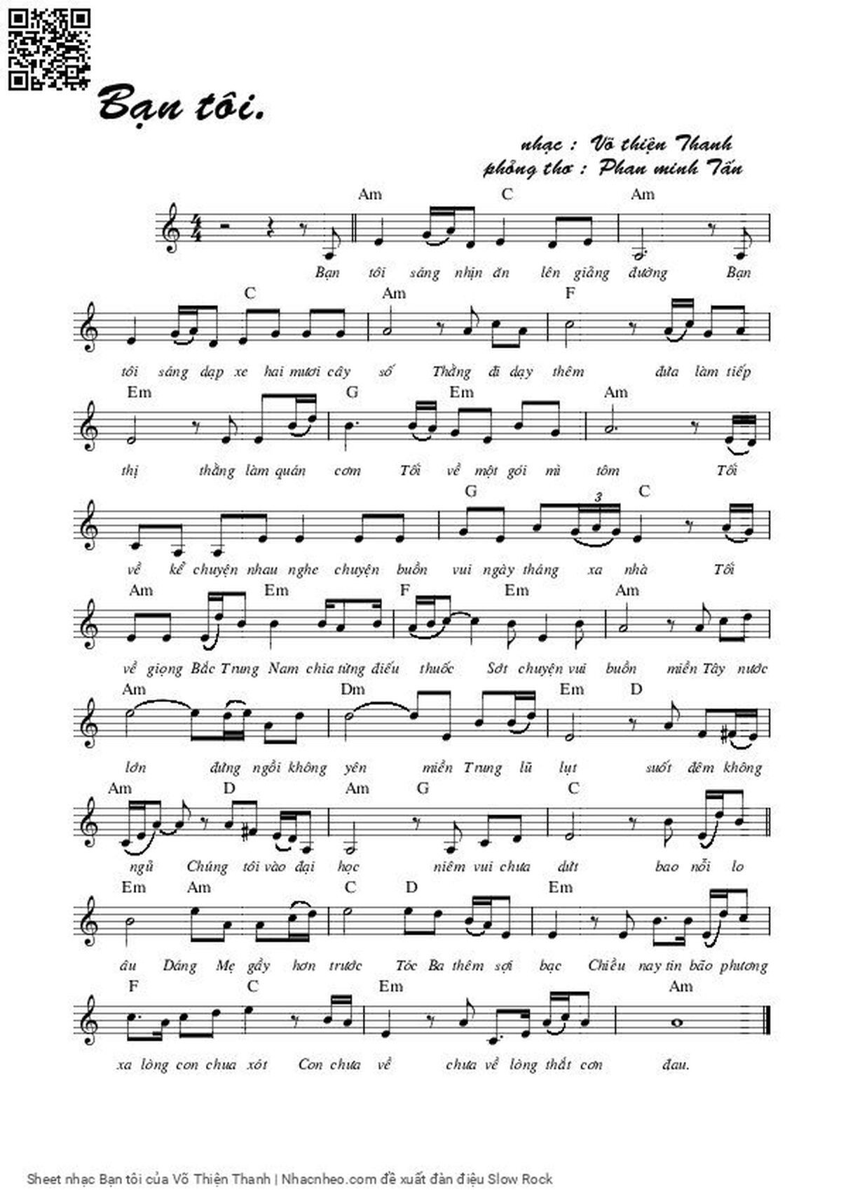 Võ Thiện Thanh Bạn tôi sáng nhịn ăn lên giảng đường [PDF] [Sheet] [Lời H.A] [Mp4/Midi]