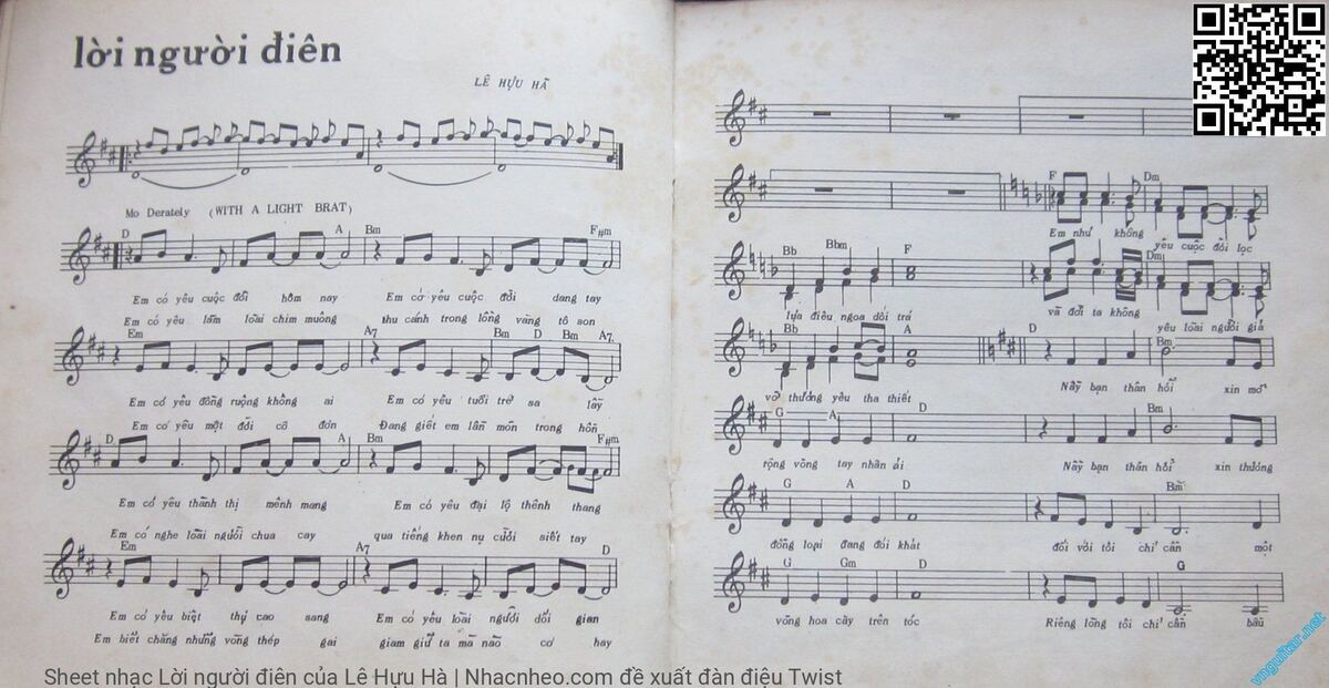 Chọn nút dấu + để tăng tông lên nửa cung, nút dấu - để giảm tông xuống nửa cung. Rê chuột vào hợp âm để xem các thế bấm hợp âm của bài hát Lời người điên.
