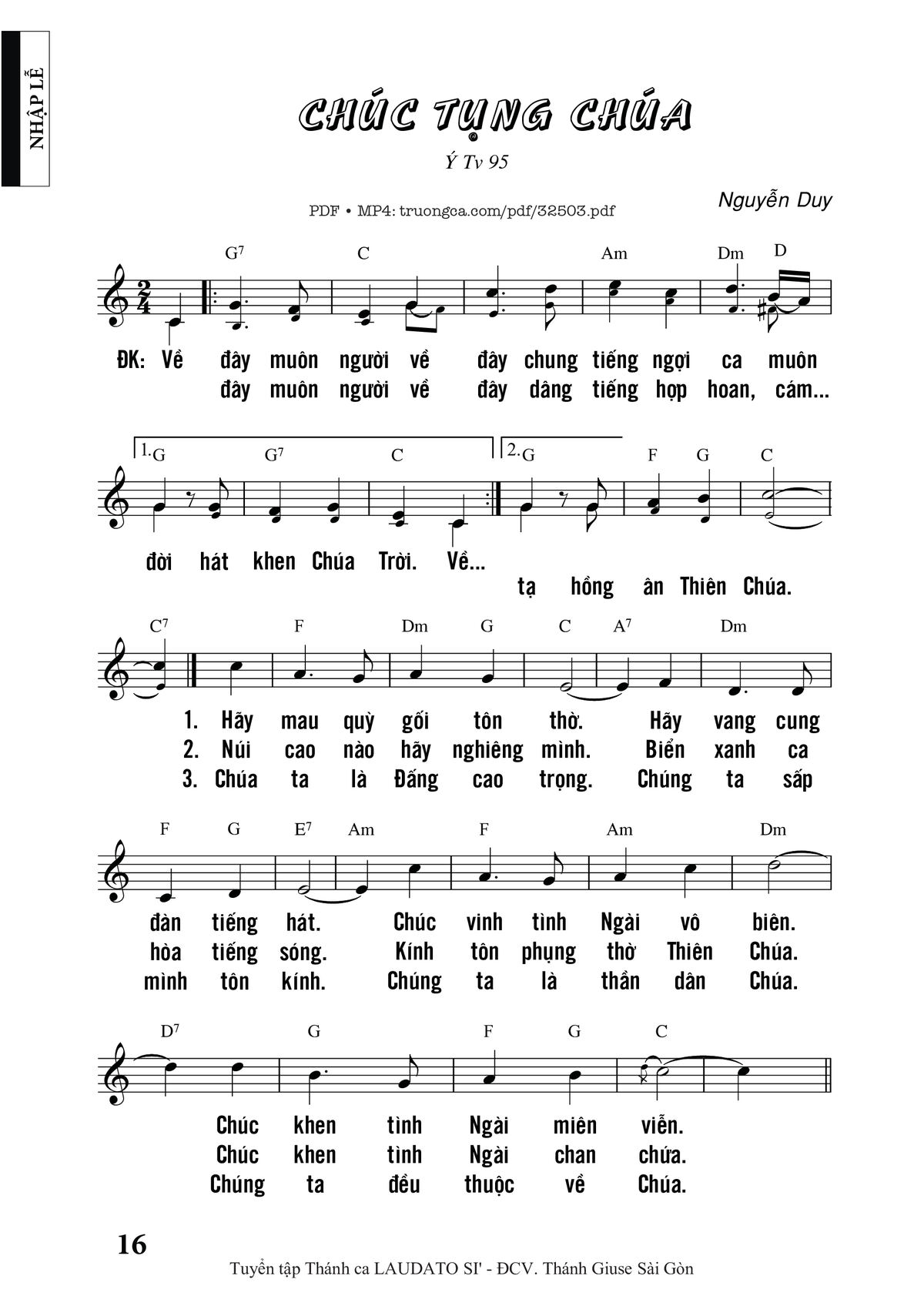 Sheet Chúc Tụng Chúa PDF (Nguyễn Duy), hợp âm