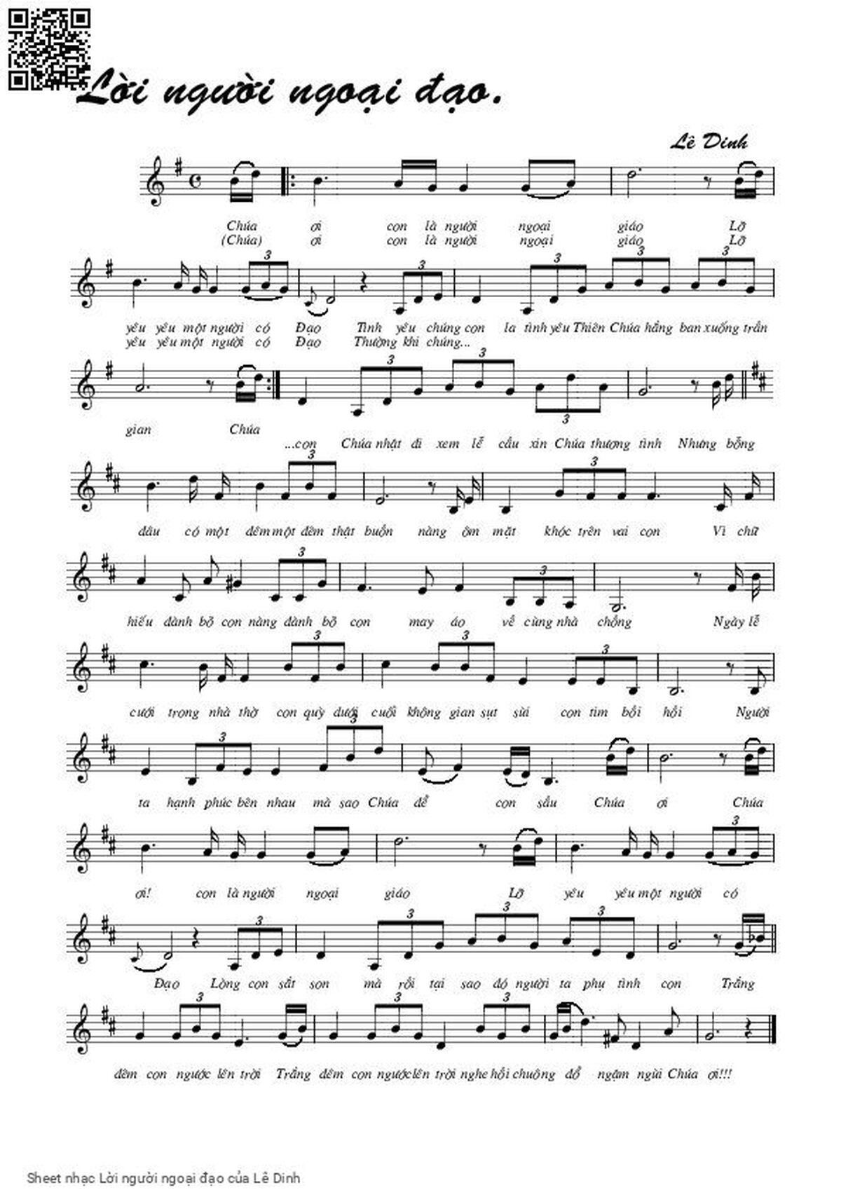 Lê Dinh Chúa ơi con là người ngoại giáo [PDF] [Sheet] [Lời H.A] [Mp4/Midi]