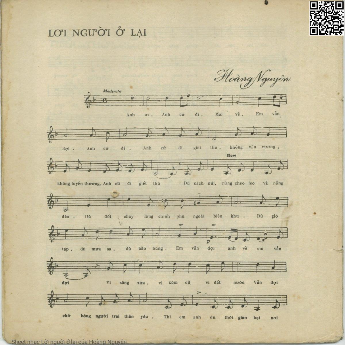 Phần nghe hát Lời người ở lại (Hoàng Nguyên) được nhúng từ Youtube, Musescore hoặc link ngoài và chịu sự kiểm soát bản quyền của bên thứ ba đó, vì vậy có thể bị xóa hoặc chèn quảng cáo bất kỳ lúc nào. Nếu bạn không nghe - xem được ca sĩ hát tức là đã bị Youtube hoặc Musescore kiểm soát.