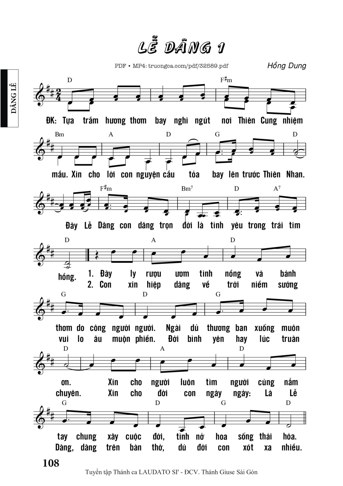 Sheet Lễ Dâng 1 PDF (Hồng Dung), hợp âm