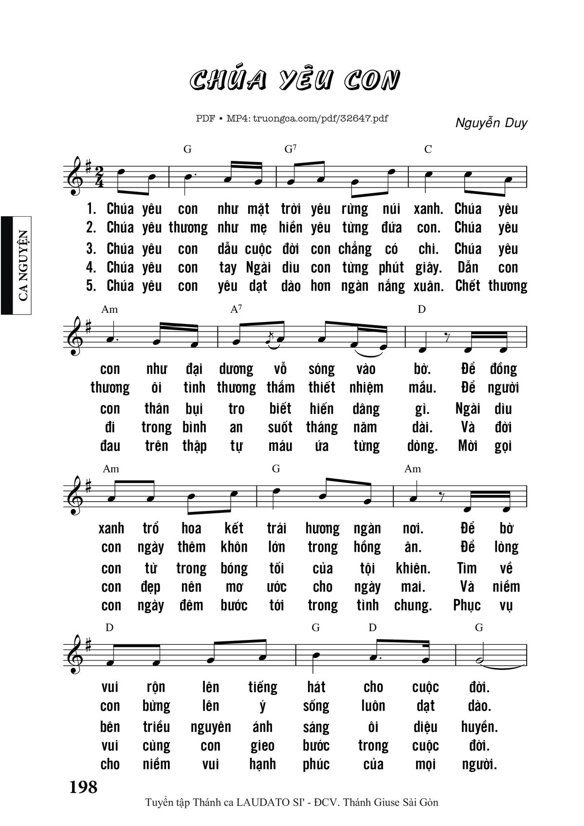 Sheet Chúa Yêu Con PDF (Nguyễn Duy), hợp âm