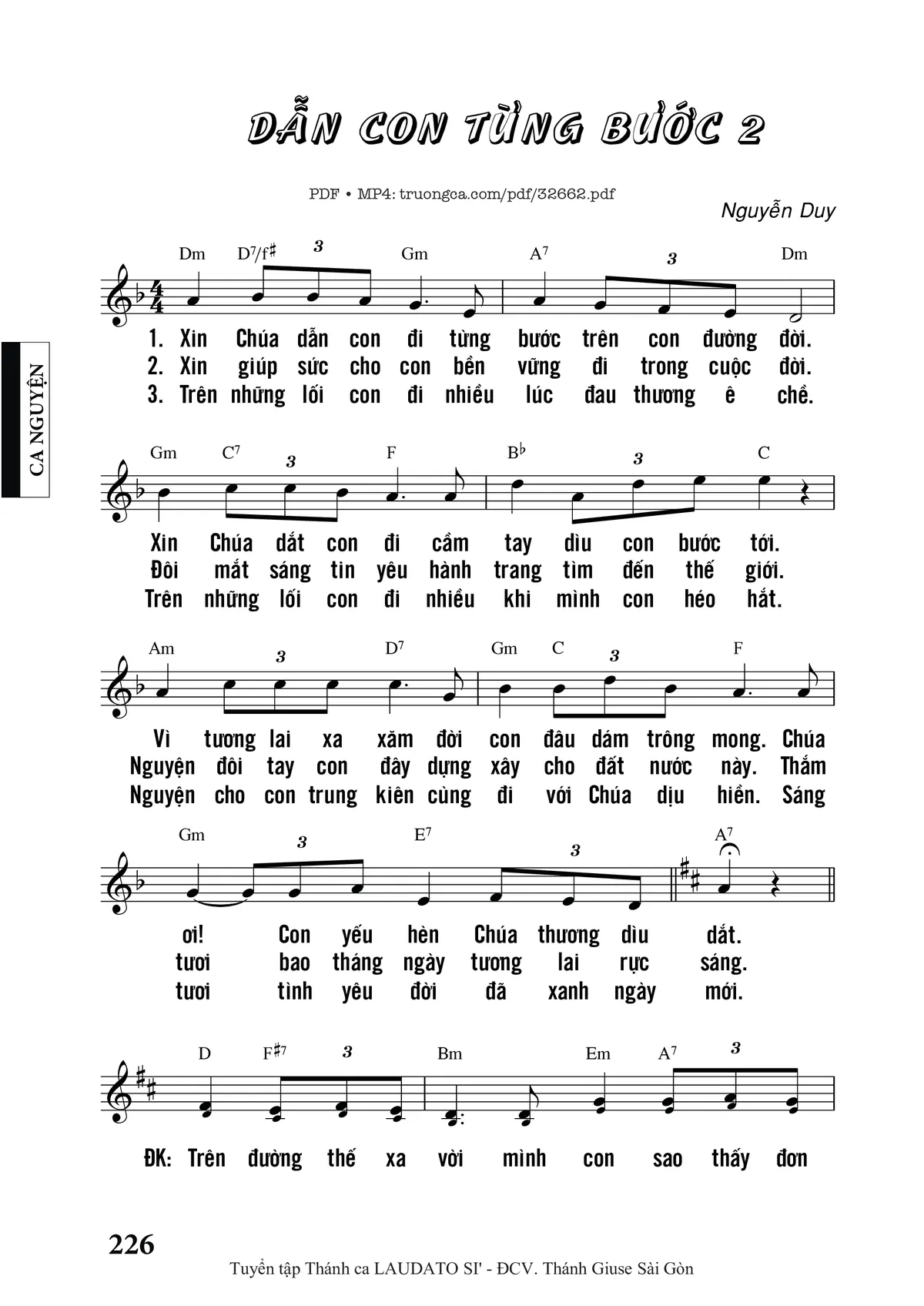 Sheet nhạc có nốt Dẫn Con Từng Bước 2 của nhạc sĩ Nguyễn Duy và file PDF nốt nhạc đăng lên đây nhằm giúp các bạn xướng âm cho đúng nốt và hát thêm hay, chỉ mang tính chất tham khảo, không có mục đích thương mại. Bản quyền thuộc về tác giả và tổ chức nắm bản quyền, Truongca.com không giữ bất kỳ bản quyền của nội dung nào cả. Các bạn có thể tải về bản PDF chất lượng cao, gồm khuông nhạc có nốt với đường link file PDF bên trên.